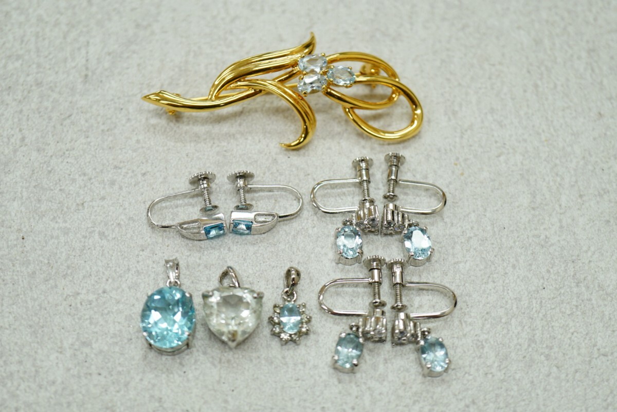B334 ブルートパーズ ネックレス ペンダント ブローチなど ヴィンテージ アクセサリー カラーストーン 大量 まとめて おまとめ SILVER含む