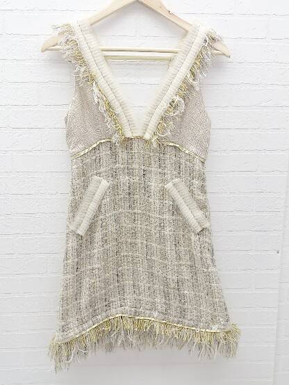 ◇ Chesty チェスティ 光沢 ラメ ミニ ジャンパー スカート 0 ベージュ マルチ *