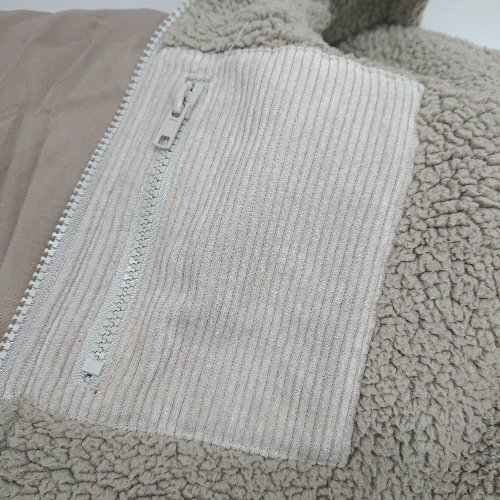 ◇ ⊇ n'Or 異素材コーデュロイ ボリュームスリーブ 長袖 フーデッドボアブルゾン サイズF ベージュ レディース E