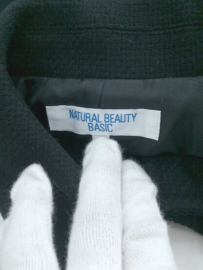 ◇ NATURAL BEAUTY BASIC シンプル 大人女子 ウール 長袖 コート サイズM ブラック レディース E