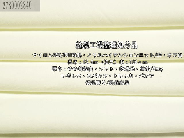 | ナイロン/PU混 メリルハイテンションニットUV やや薄オフ白13.6m | |