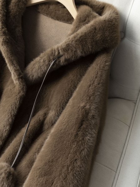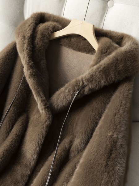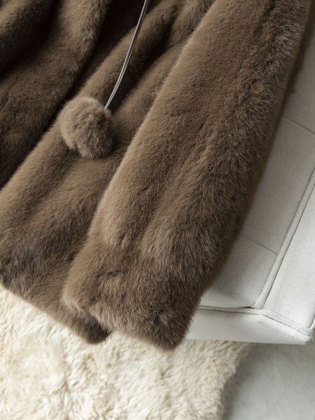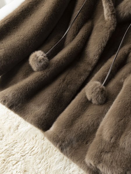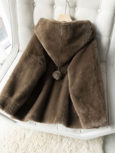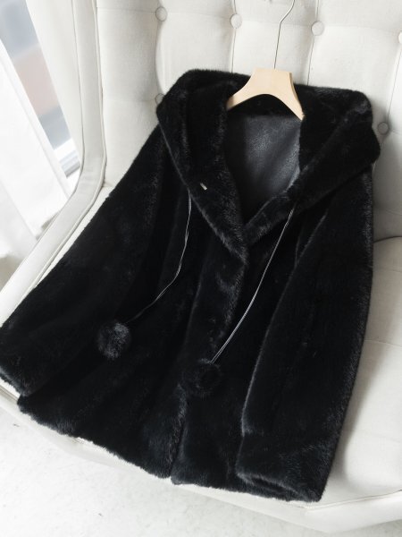 ファーコート ミンク混 ふわふわ 暖かい フード付き 可愛い ゆったり ポンポン 毛皮コート アウター 冬 ブラック フリーザイズ xfz15.1