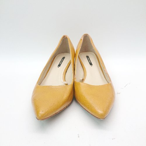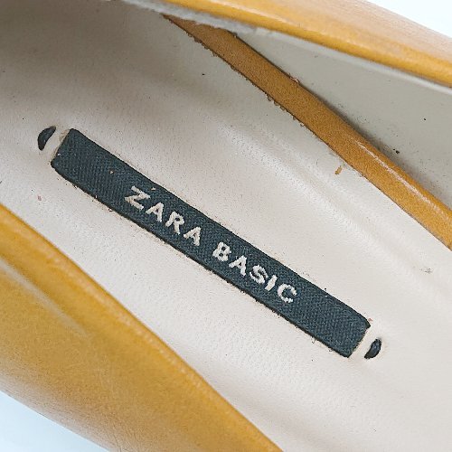 ◇ ZARA BASIC ザラベーシック ポインテッドトゥ ヒール 異素材 ゴールド金具 パンプス サイズ37 ブラウン レディース E