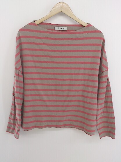 ◇ nano universe ナノ ユニバース ボーダー 長袖 カットソー サイズF ベージュ レッド系 レディース P