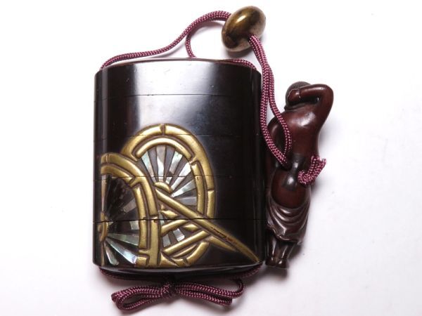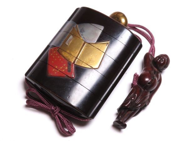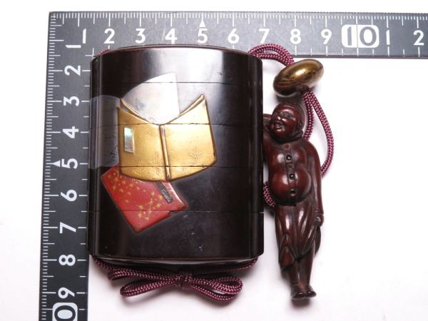 ●江戸~明治 オリジナル 黒地 古本図 高蒔絵 印籠になります。古い物ですが極力状態の良い作品を出品しておりますので是非ご覧ください。