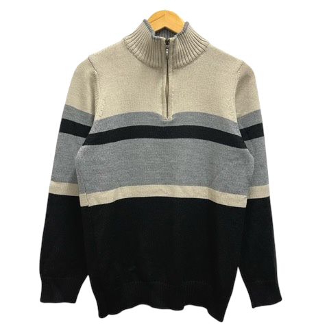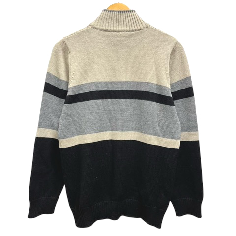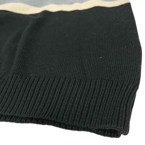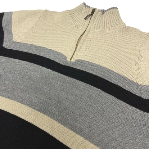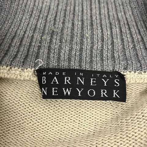 バーニーズニューヨーク ニット セーター ハーフジップ ボーダー ウール混 長袖 48 ベージュ グレー 黒 ブラック レディース