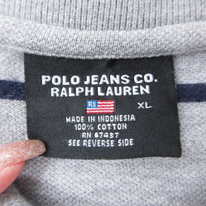 【商品名】 XL★古着 ラルフローレン ポロジーンズ 半袖 ブランド ポロ シャツ メンズ 00年代 00s ワンポイントロゴ 鹿の子 大きいサイズ コットン グレー 霜降り他 ボーダー