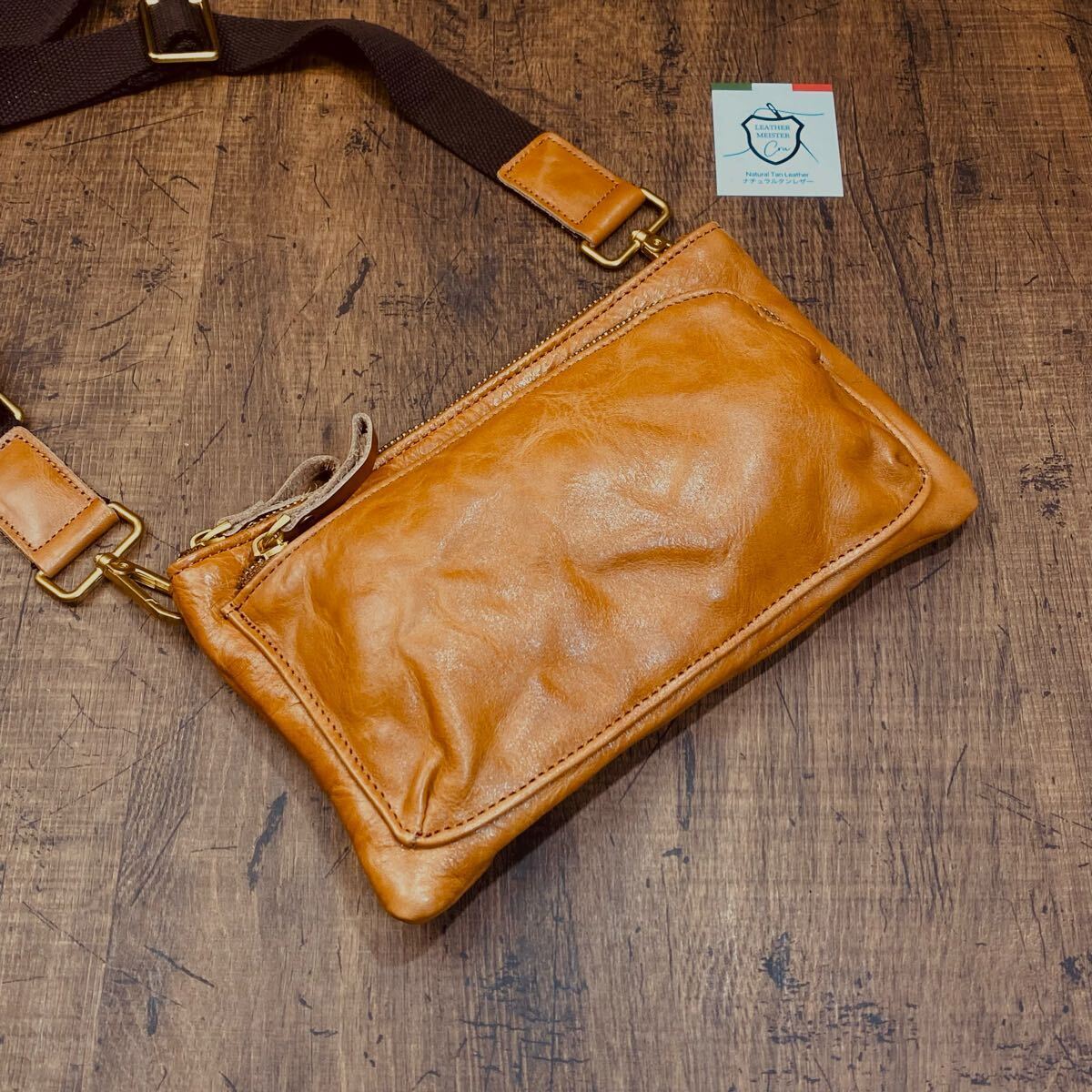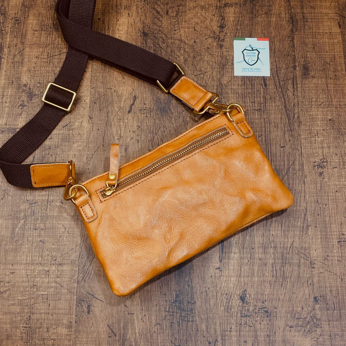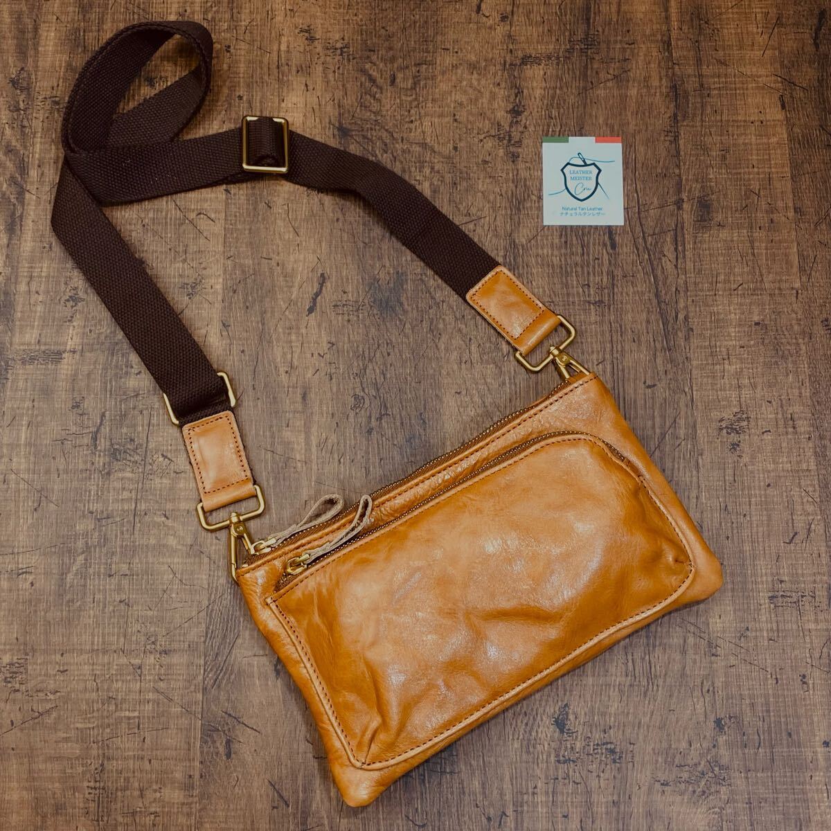 牛革を使用し、カジュアルな中に落ち着いた雰囲気を漂わせています。財布やスマホなどの必携品を余裕をもって収納可能。休日のちょっとした外出にベストな大きさです。使いやすい機能性とコーディネートしやすい絶妙なデザインが人気のショルダーバッグです