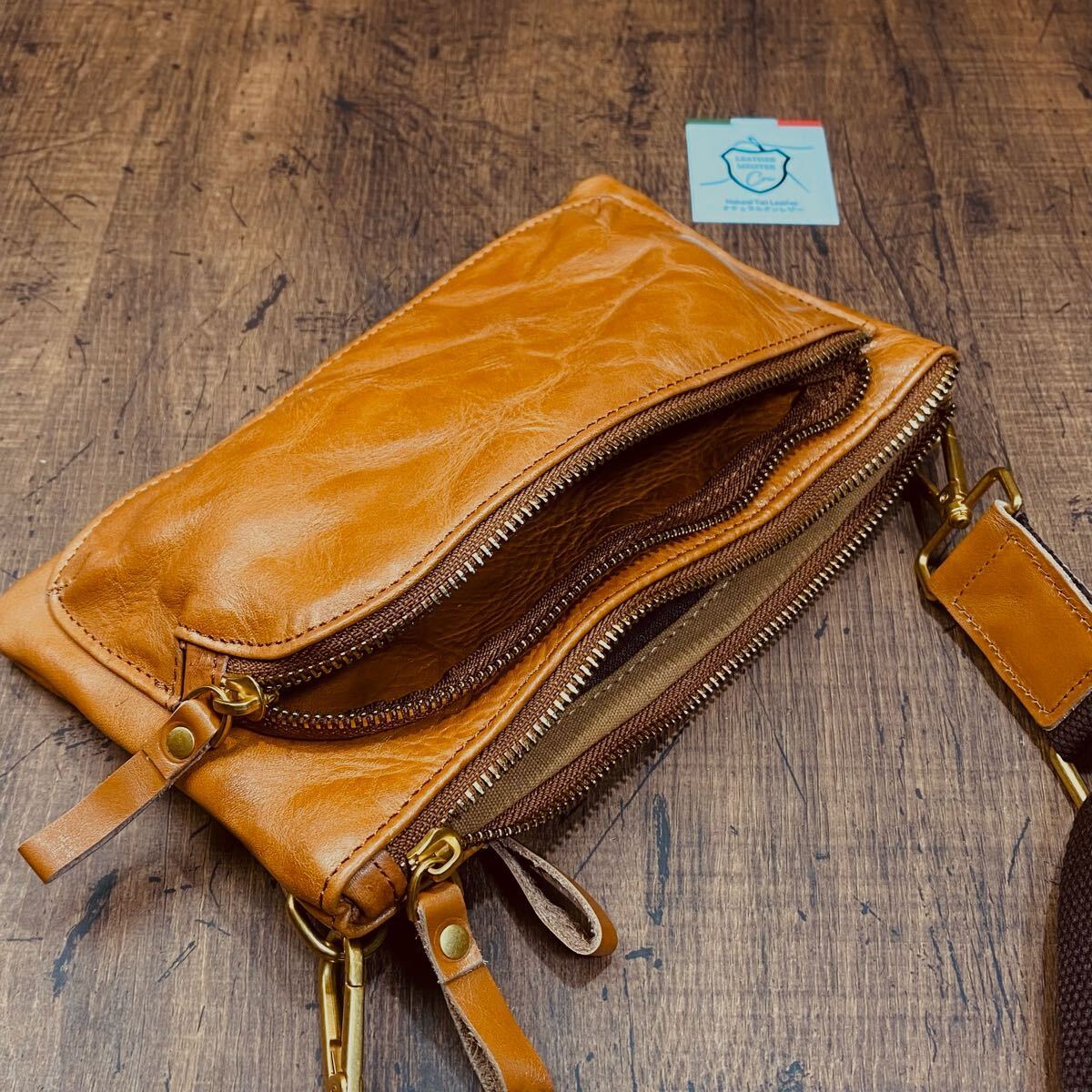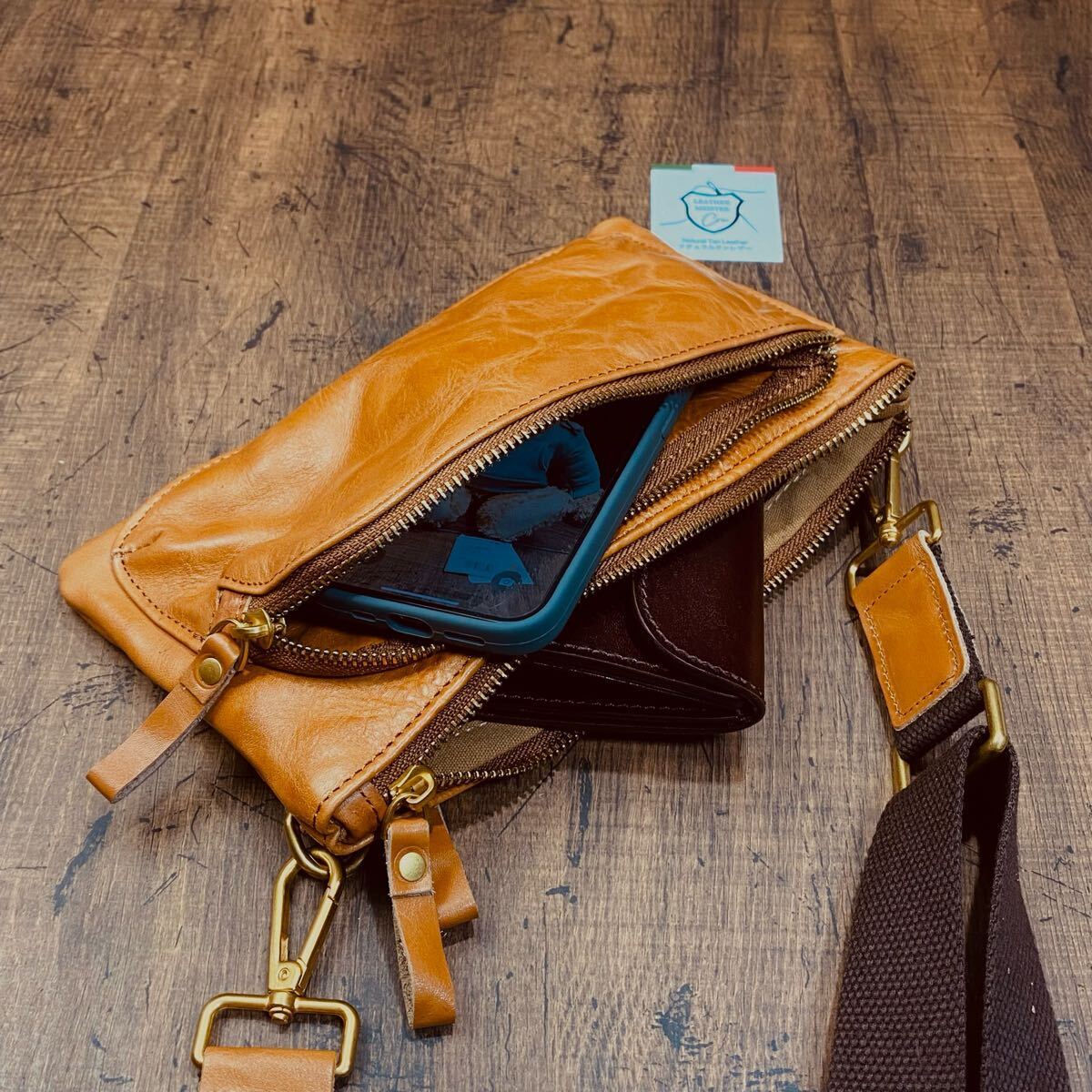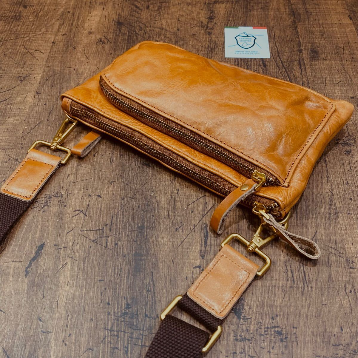 牛革を使用し、カジュアルな中に落ち着いた雰囲気を漂わせています。財布やスマホなどの必携品を余裕をもって収納可能。休日のちょっとした外出にベストな大きさです。使いやすい機能性とコーディネートしやすい絶妙なデザインが人気のショルダーバッグです