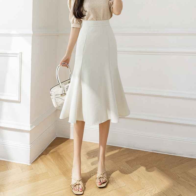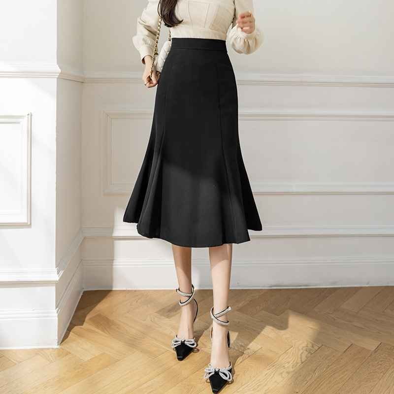 春夏新作 レディース ボトムス 無地スカート ゆったりスカート 通勤 XL ブラック
