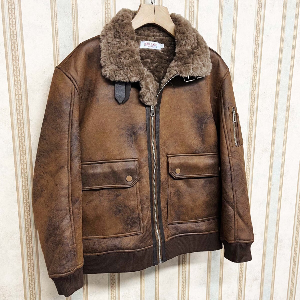 個性 定価14万 FRANKLIN MUSK・アメリカ・ニューヨーク発 レザージャケット シープスキン 厚手 裏起毛 防寒 ボマージャケット ライダース サイズ2