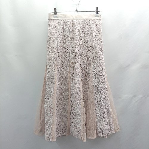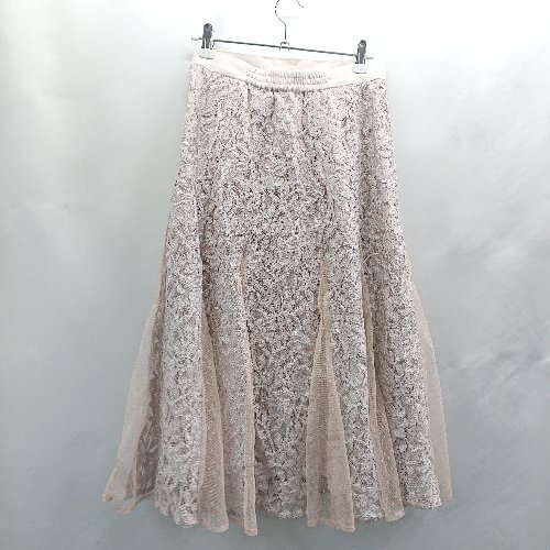 ◇ Θ Apuweiser riche レース 花柄 ドット柄 膝下丈 フレアー スカート サイズ1 ピンク系 レディース E