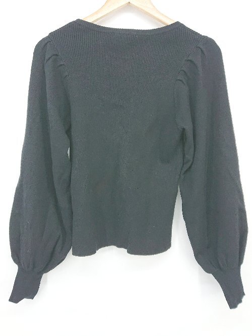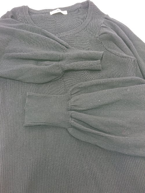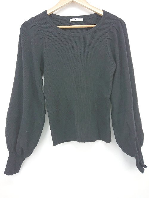◇ SLY スライ 無地 ボリュームスリーブ リブニット 長袖 カットソー サイズF ブラック レディース P