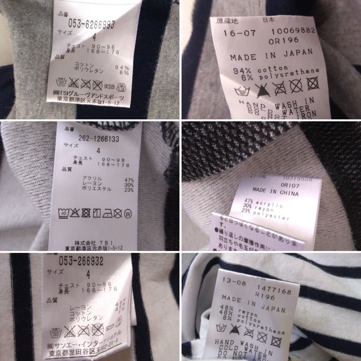 ①メーカー表記サイズ(4) 着丈62㎝ 身幅44cm〜 肩幅38cm〜 袖59㎝ ②メーカー表記サイズ(4) 着丈63㎝ 身幅46㎝〜 肩幅40㎝~ 袖58㎝ ③メーカー表記サイズ(4) 着丈67㎝ 身幅45㎝~ 肩幅40㎝~ 袖62cm |