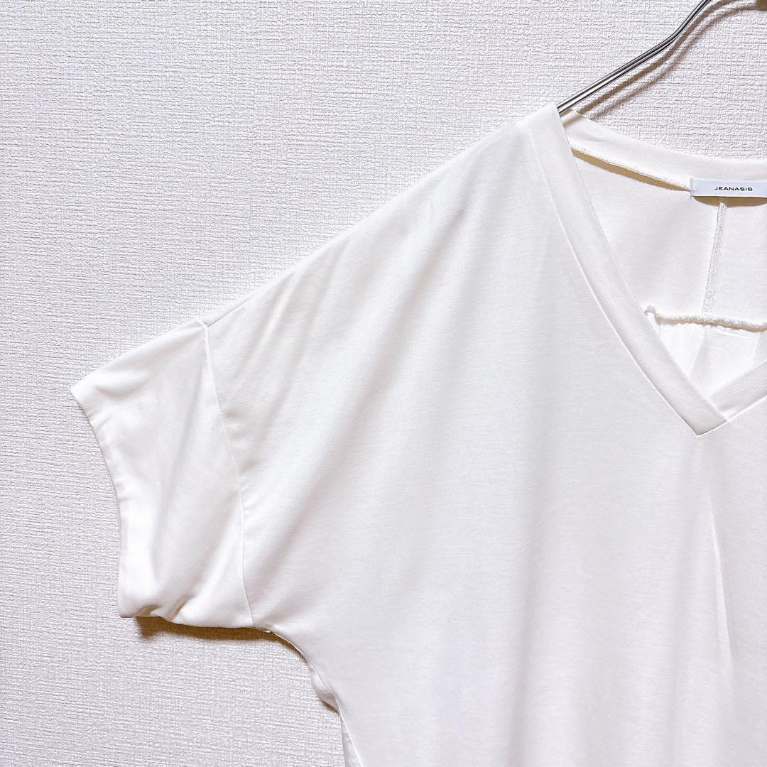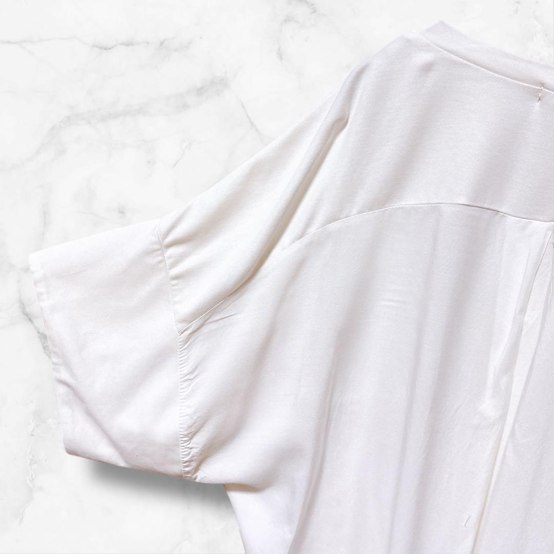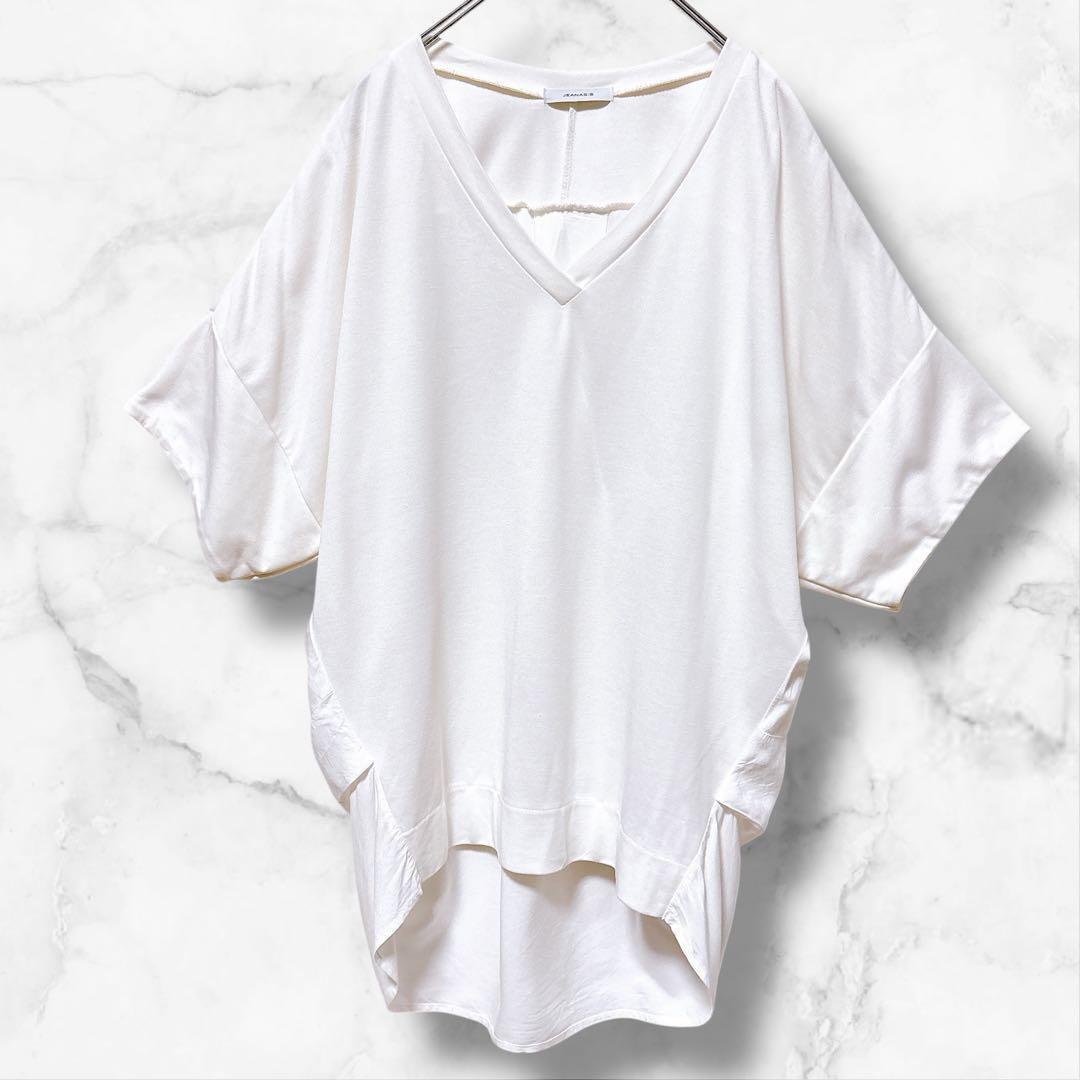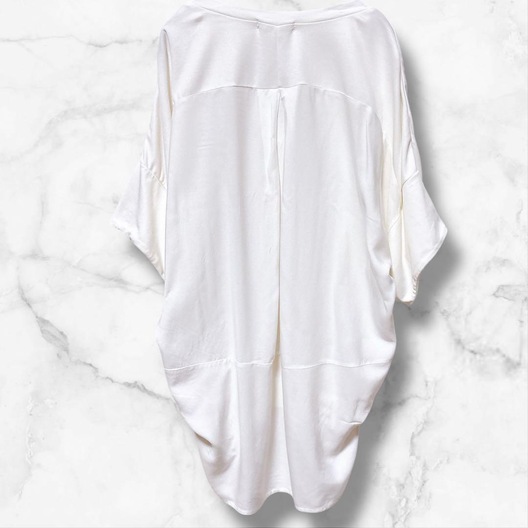 【ジーナシス】5分袖Vネックチュニック 白無地(F)体型カバー ゆったり 上品 AC1AD6