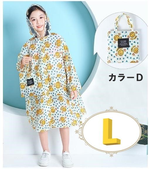 レインウェア 合羽 レインウェア キッズ 子供用 雨具 通学 カラーD Lサイズ 120㎝-135cm n363