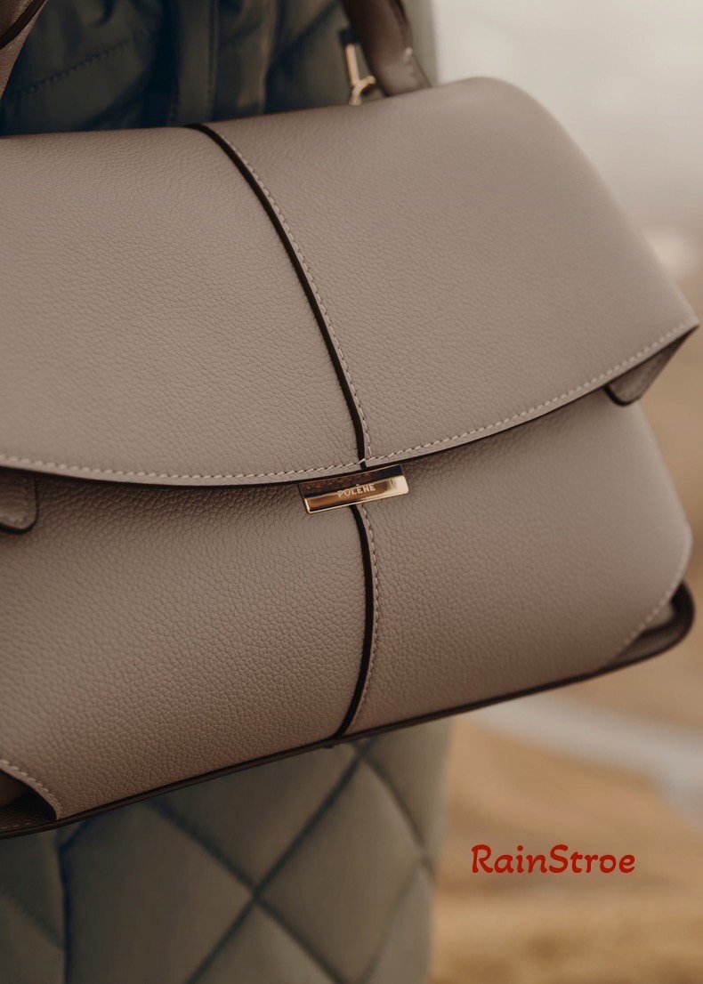 POLENE ハンドバッグ レディースショルダーバッグ Mokki モッキ 美品 ワンハンドルバッグ グレー 手持ち 斜め掛け 2way フォーマル