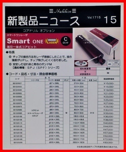 ★ 新品未開封 ★ コンセック  Smart one  レーザー   ダイヤモンドコアビット  65φ   ( Cロッドネジ  ) ( 削孔有効 260mm )