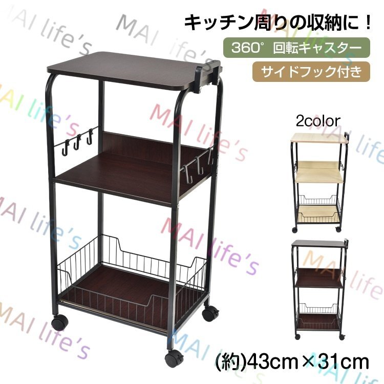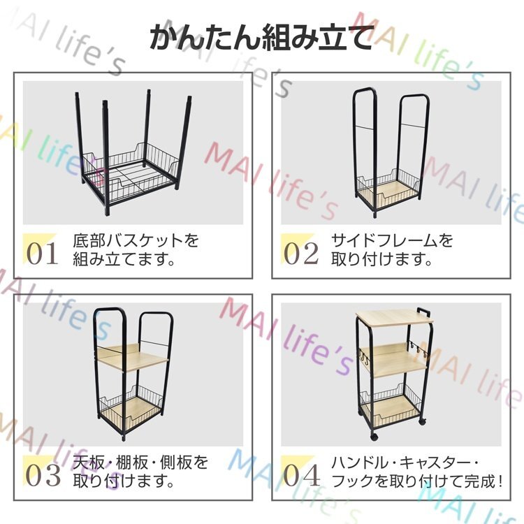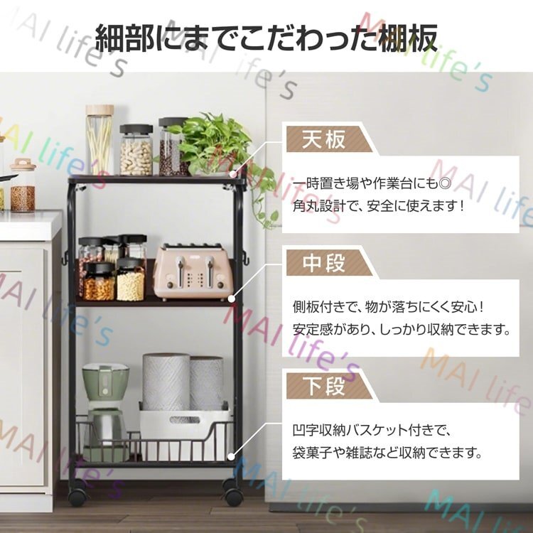 キッチンワゴン キッチンラック 調味料ラック 収納ワゴン 大容量 360°回転キャス夕一 サイドフック付き ハンドル付き お手入れ簡単 省スペ一ス 場所を取らず キッチン 寝室 リビング 書斎