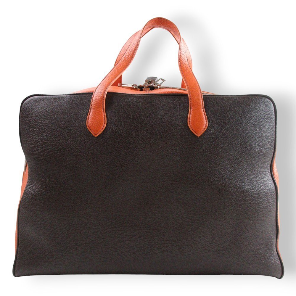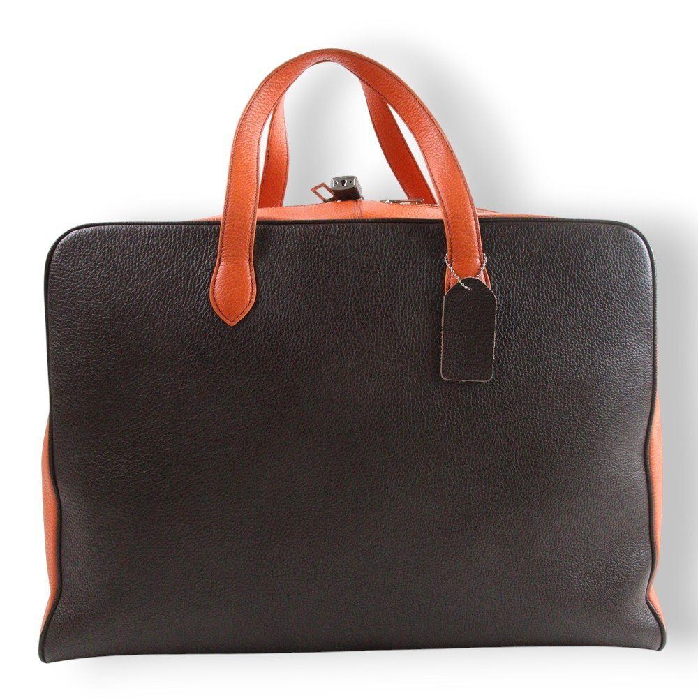 エルメスオレンジ バイカラーデザイン 牛革 シュリンクレザー 大型 ボストンバッグ | |