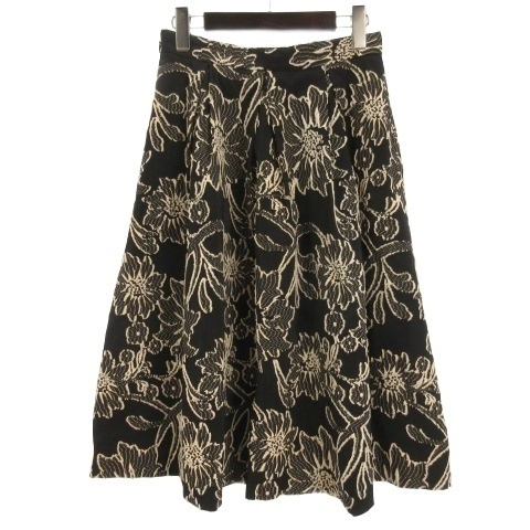 クイーンズコート QUEENS COURT フラワージャガード タック フレア スカート 2 ブラック 251208E レディース