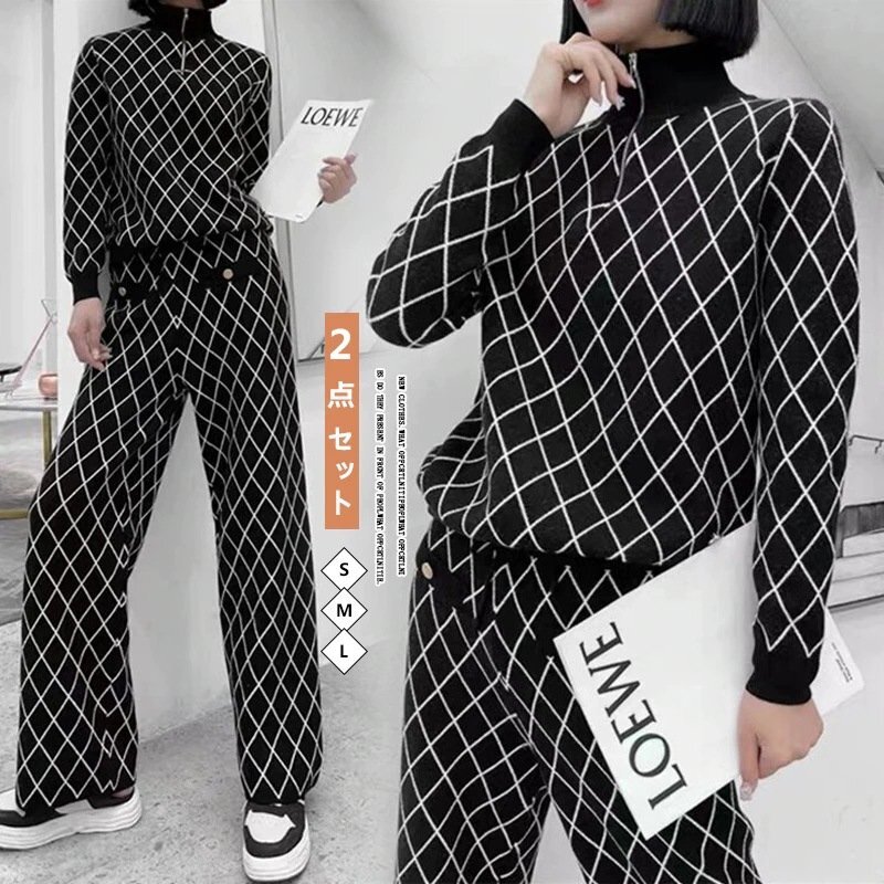 セーター セットアップ レディース ワイドパンツ ニット 上下セット きれいめ 2点セット 長袖 ゆったり 秋冬 通勤 通学 ★Mサイズ