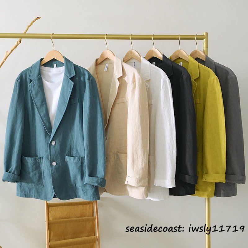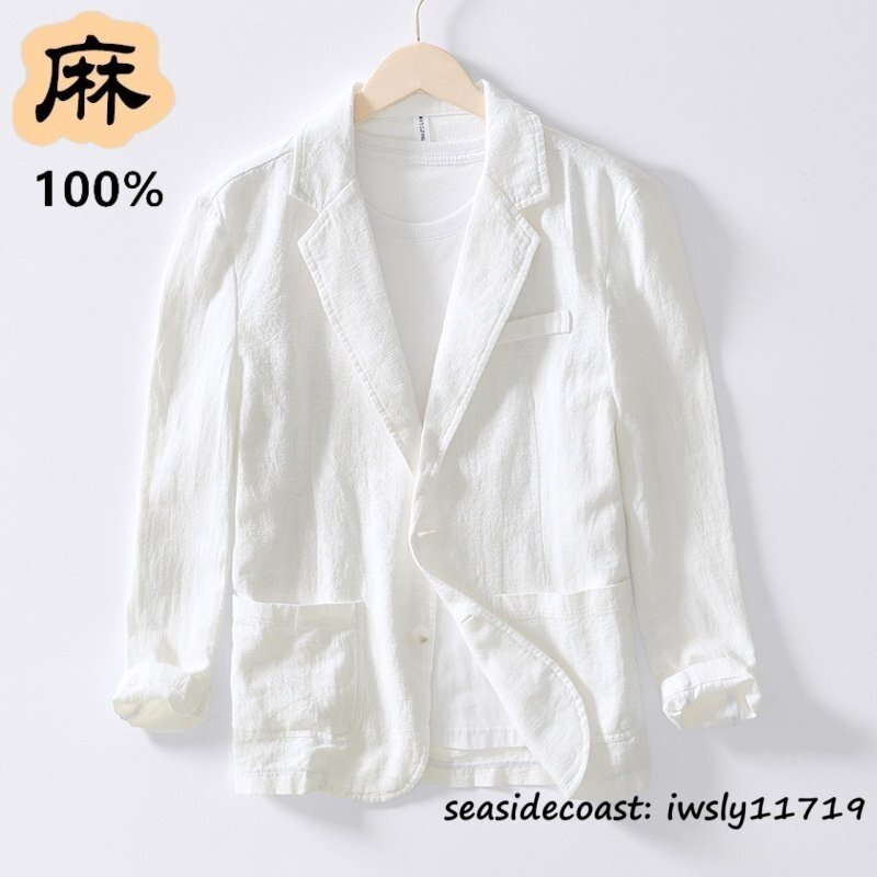 超希少*テーラードジャケット メンズ 春夏秋 リネンジャケット 麻100% 無地 清涼感 通気性 ブレザー 麻スーツ 紳士服 鮮やか ホワイト 2XL
