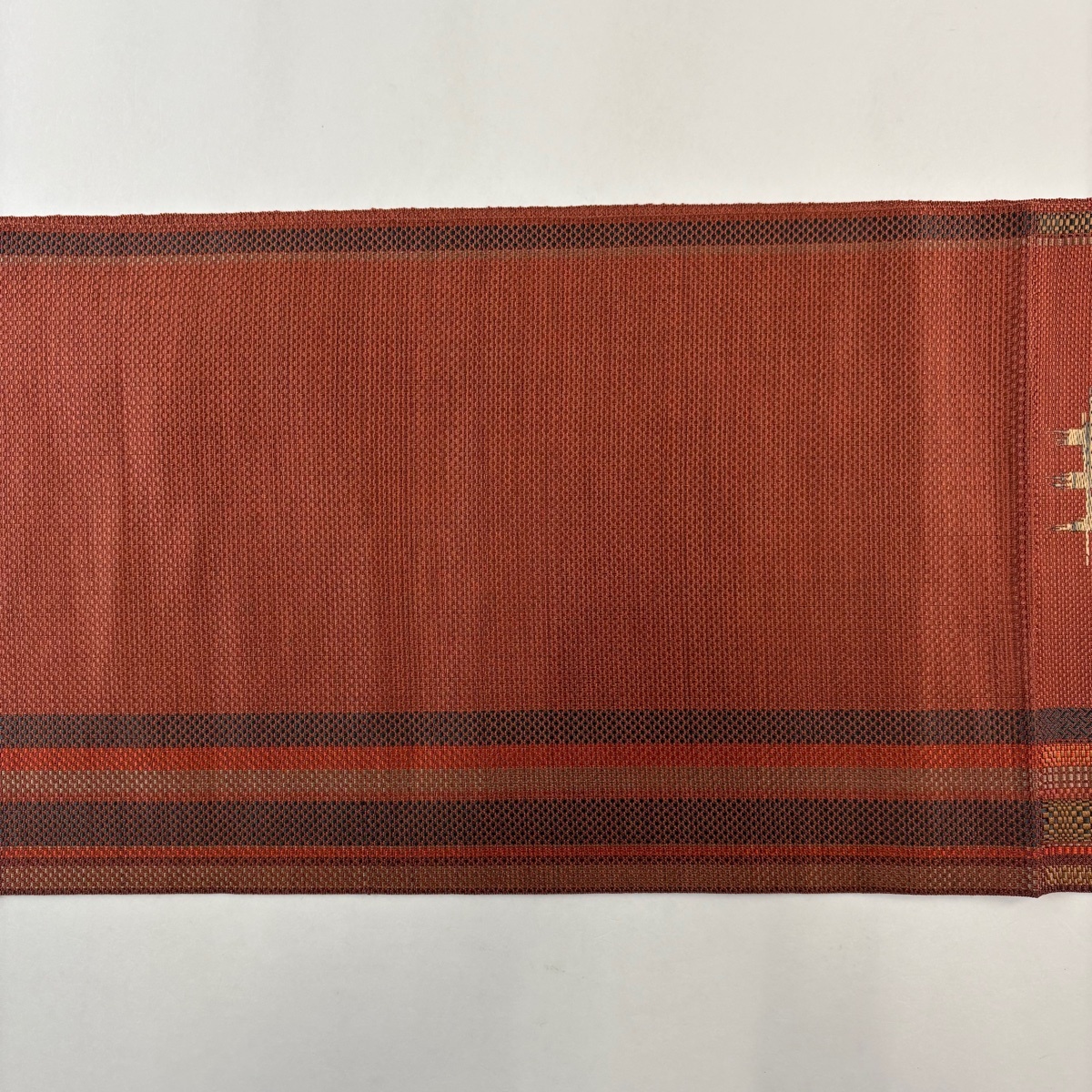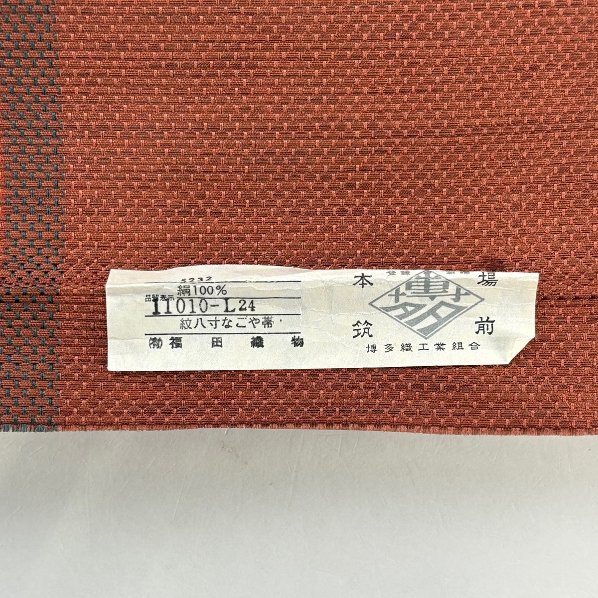 | 名古屋帯 美品 秀品 証紙 博多織 八寸名古屋帯 燕 井桁絣 赤茶 正絹 【中古】 |