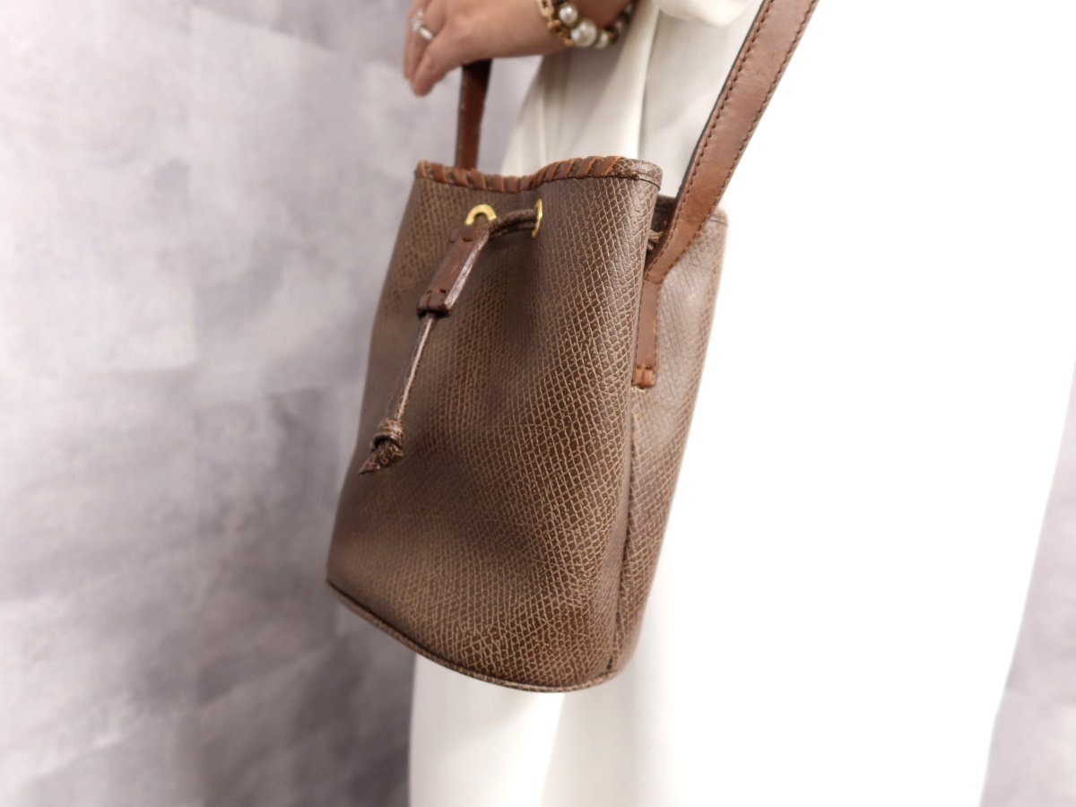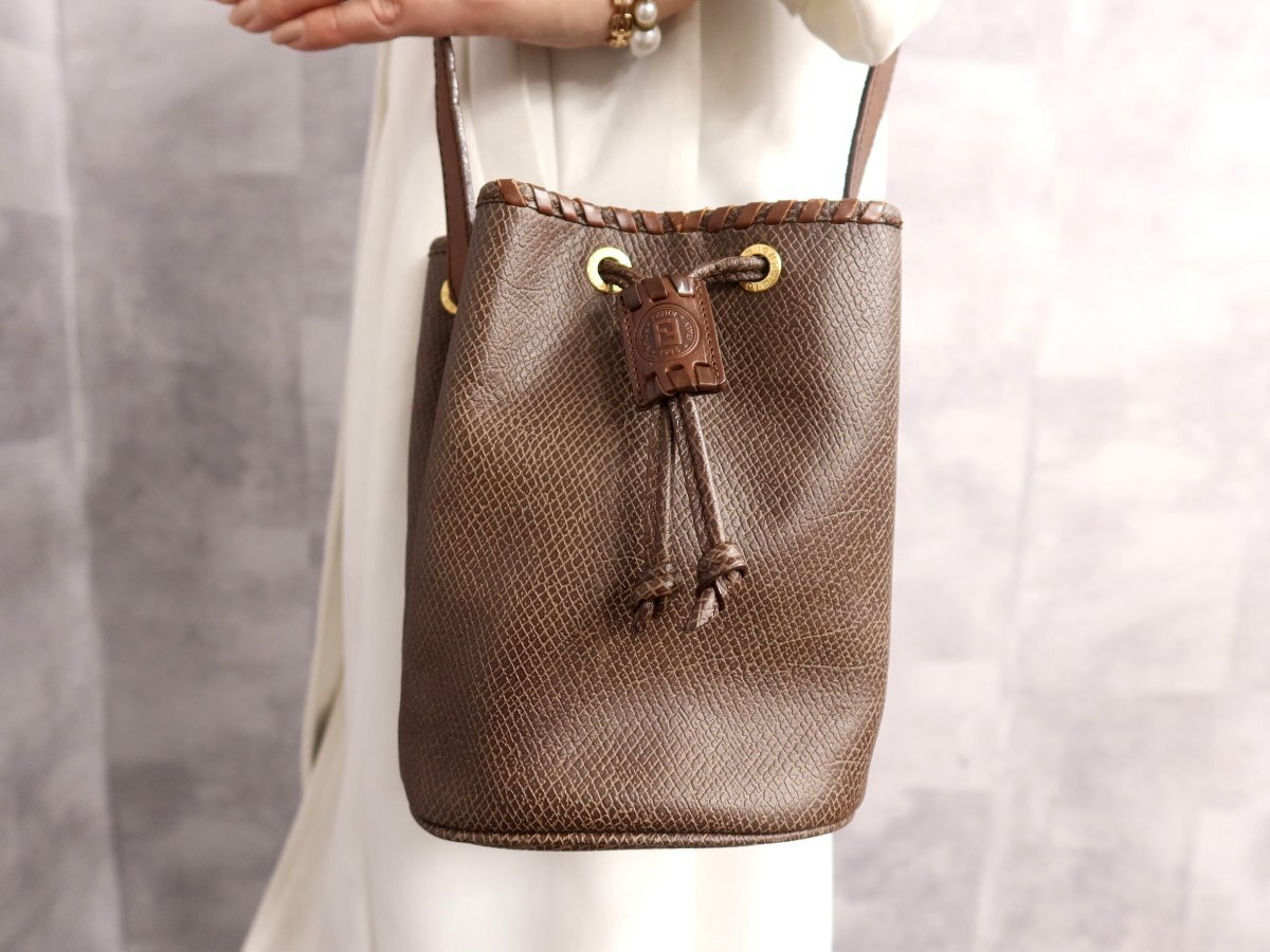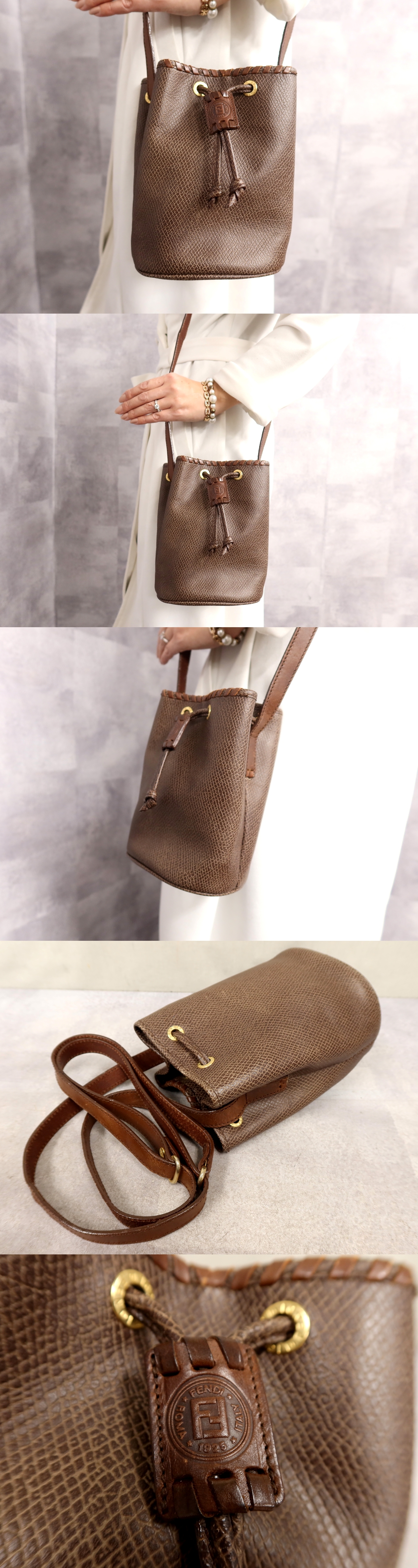 ●超美品●FENDI フェンディ●PVC カーフ レザー 本革●巾着 ショルダー バッグ●ブラウン●ゴールド金具●斜め掛け●収納 かばん●Js63221