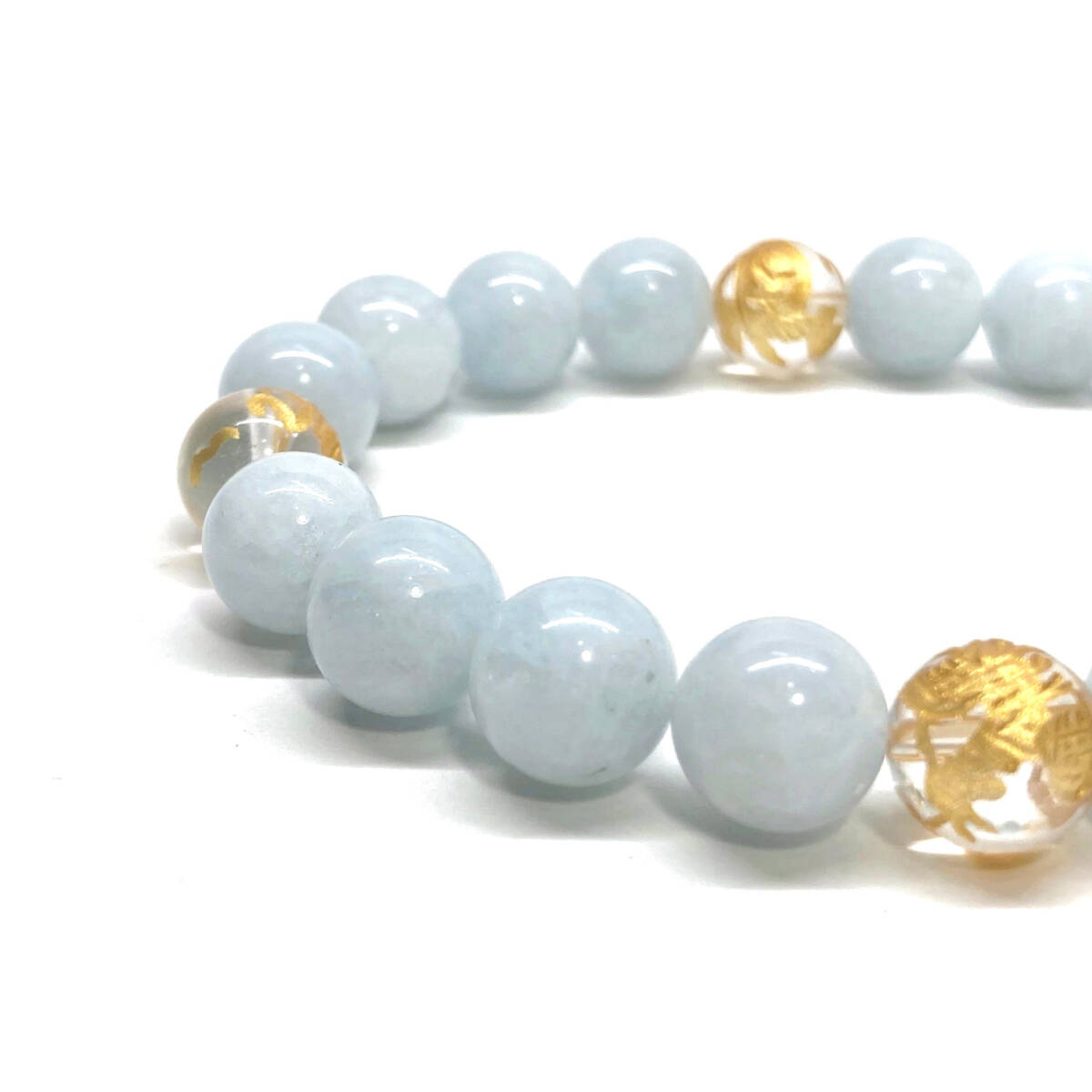 10mm 四神獣金彫水晶×アクアマリン パワーストーン ブレスレット天然石 運気上昇 開運 幸運 恋愛運 青龍 白虎 玄武 朱雀 ☆