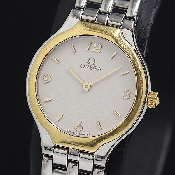 1円 稼働 オメガ デヴィル QZ アイボリー文字盤 レディース 腕時計 6371200 12ANT KMT