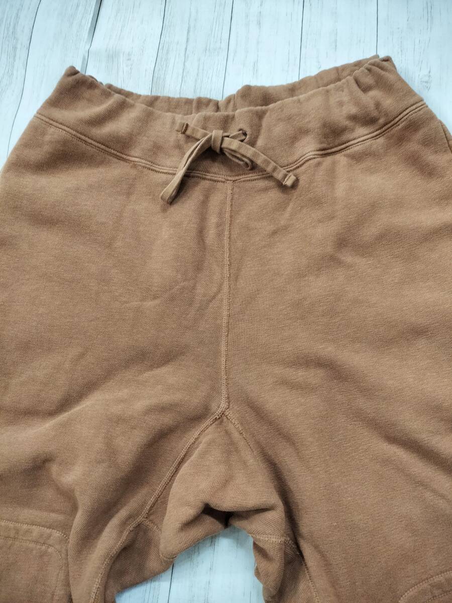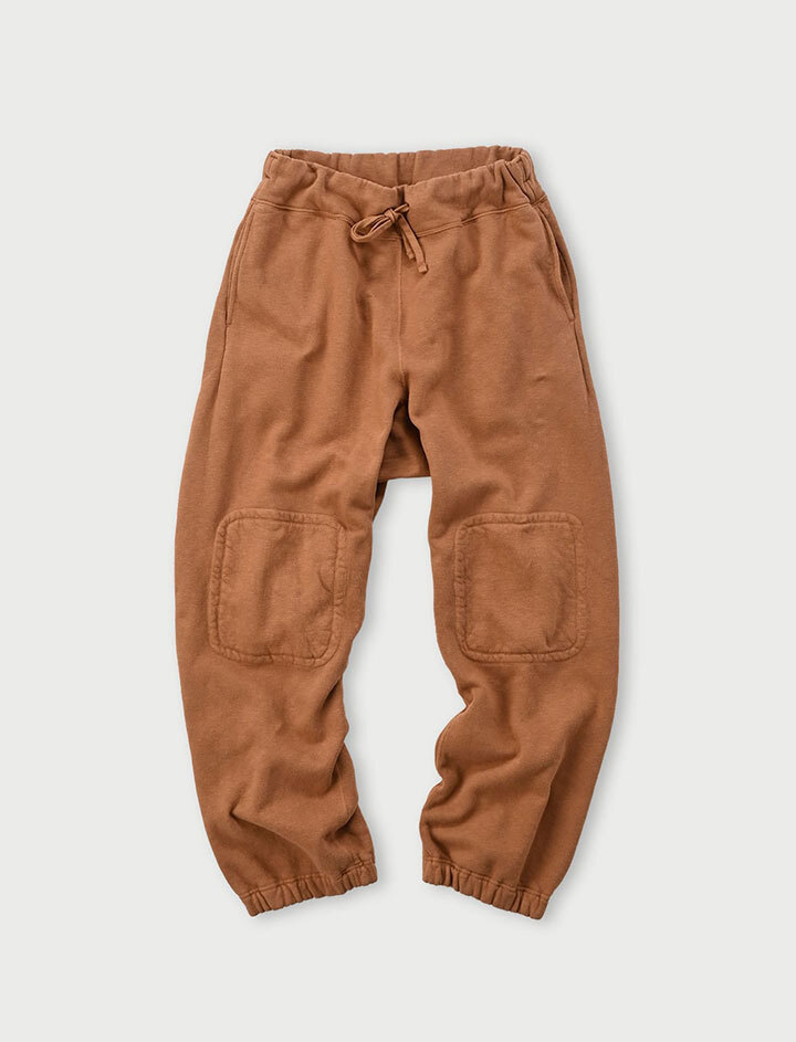 淡い色合いと肉厚なスウェット地との相性が良くダブルニーで頑丈な造りに。