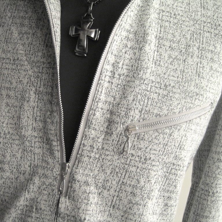■胸ポケットがファスナーあきとライダースのディテールを取り入れています