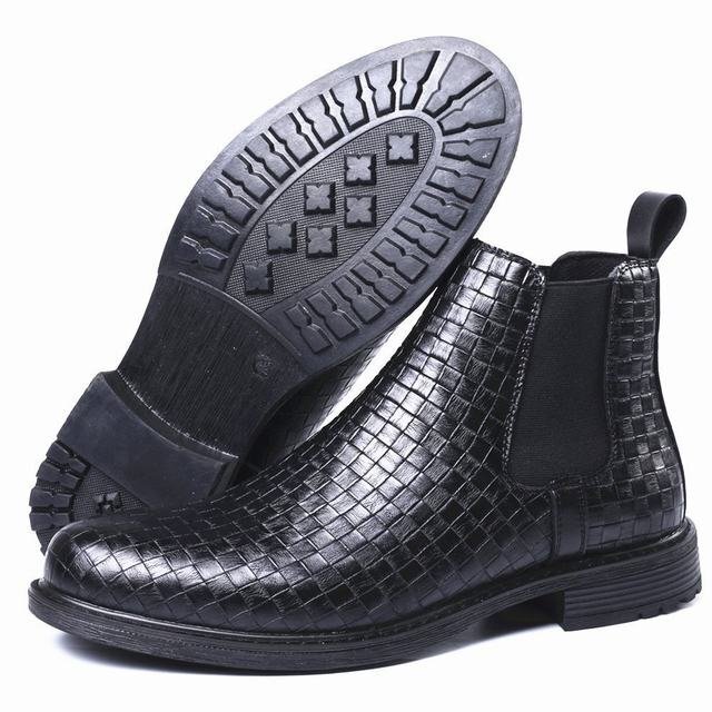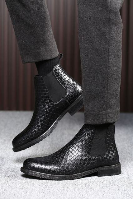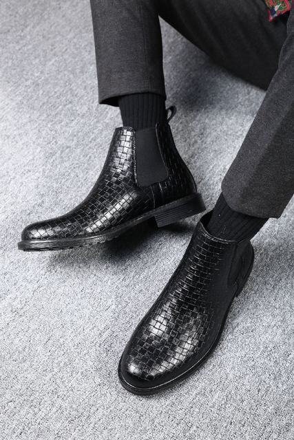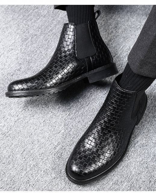 ブーツ サイドゴアブーツ メンズ ビジネスシューズ 靴 フォーマル PU革 革靴 紳士靴 ハイカット  編み柄 ブラック 26.5cm