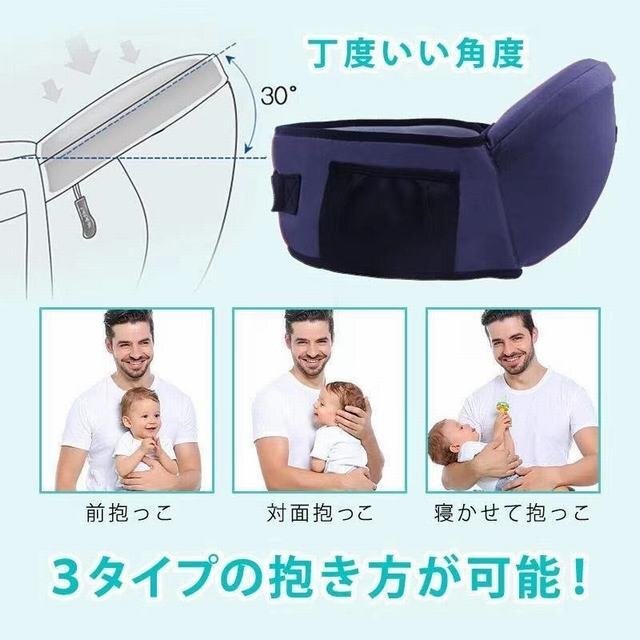 サイズ:ウエスト 約65cm~105cm 素材:ポリエステル 商品説明: 抱っこ紐単品で対面抱き,前向き抱き,腰抱き,横抱き,4通りの抱き方が可能です。外出時赤ちゃんを抱っこする時に便利なヒップシートです。 安定感のあるワイドなウエストベルトでお子様の体重をしっかりと支えくれます。お子様が座るシート部分には滑り止めパッドがついています。使用中にスレ、弛みなどが起こる心配が必要がございません。 サイドには小物収納ポケットがあり、ハンカチ、お財布、携帯など入れることが出来ます。