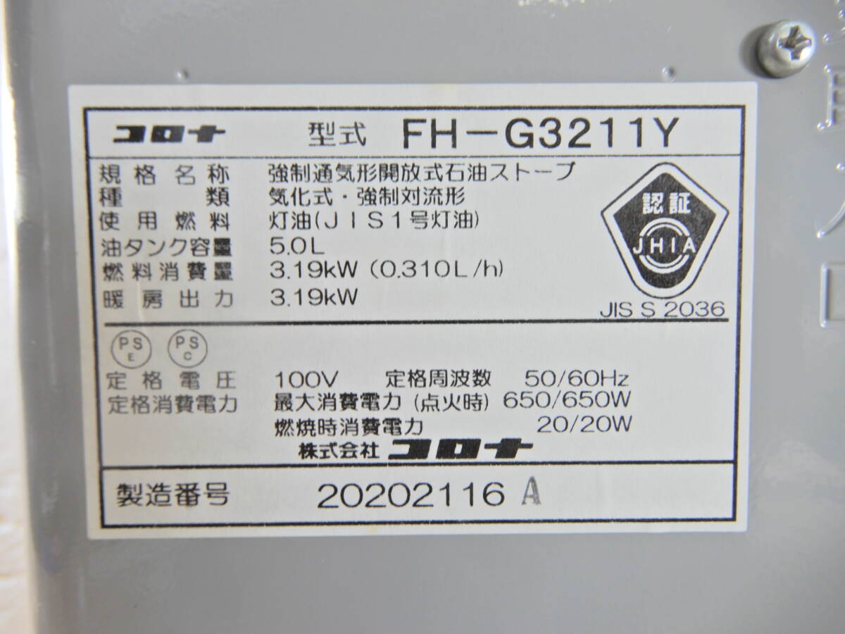 B1152★\1~CORONA/コロナ 家庭用 石油ファンヒーター 3.19kw タンク容量:5.0L model:FH-G3211Y