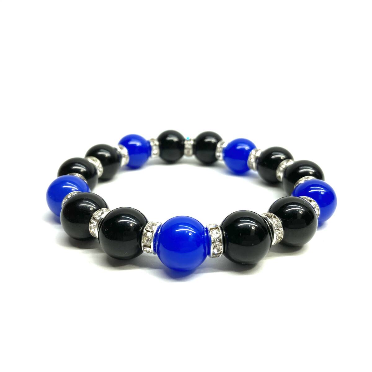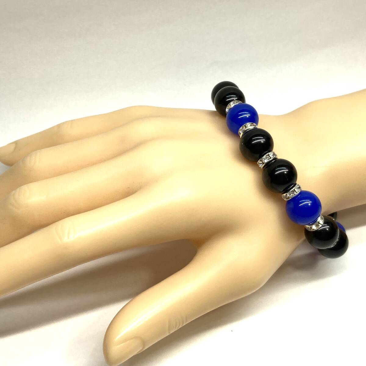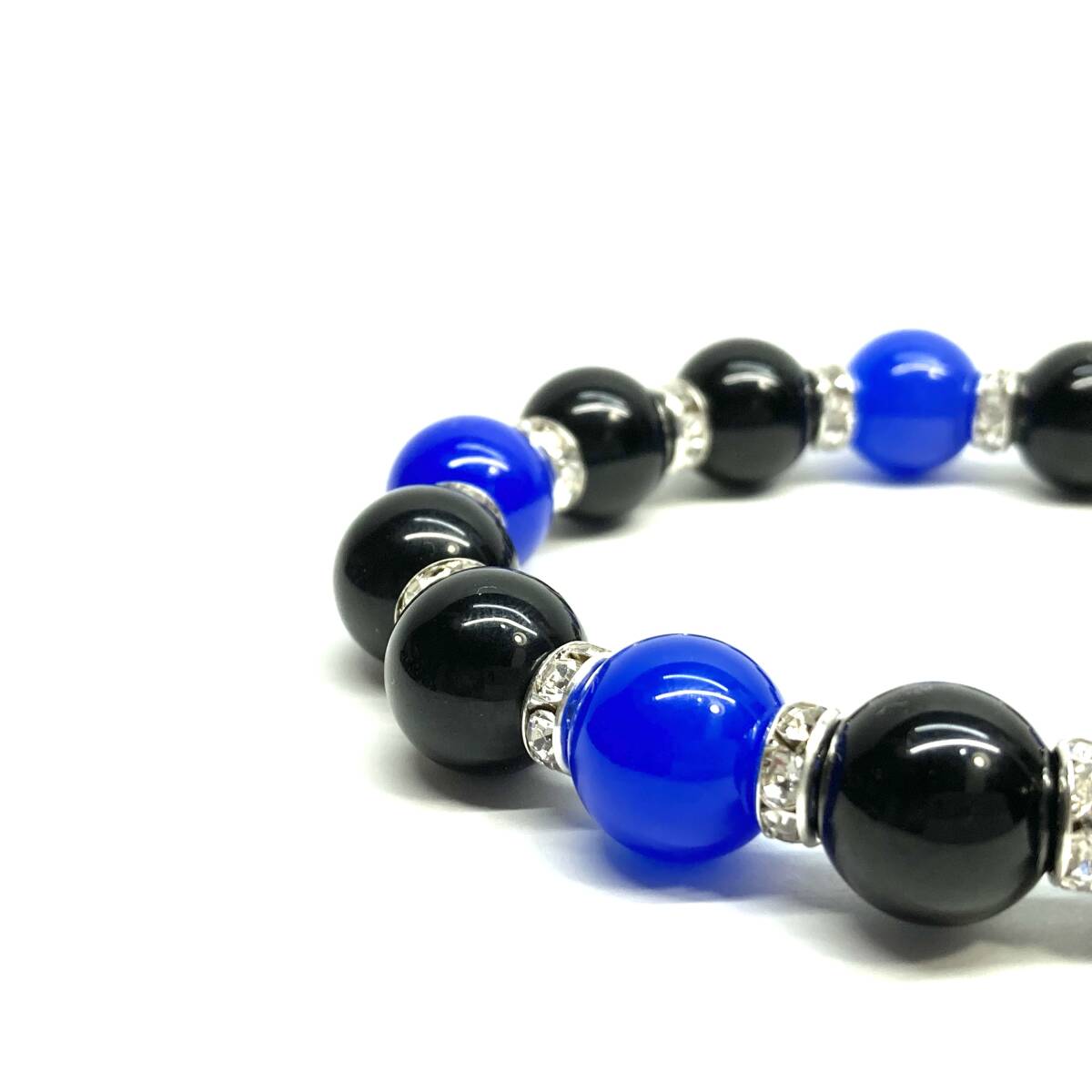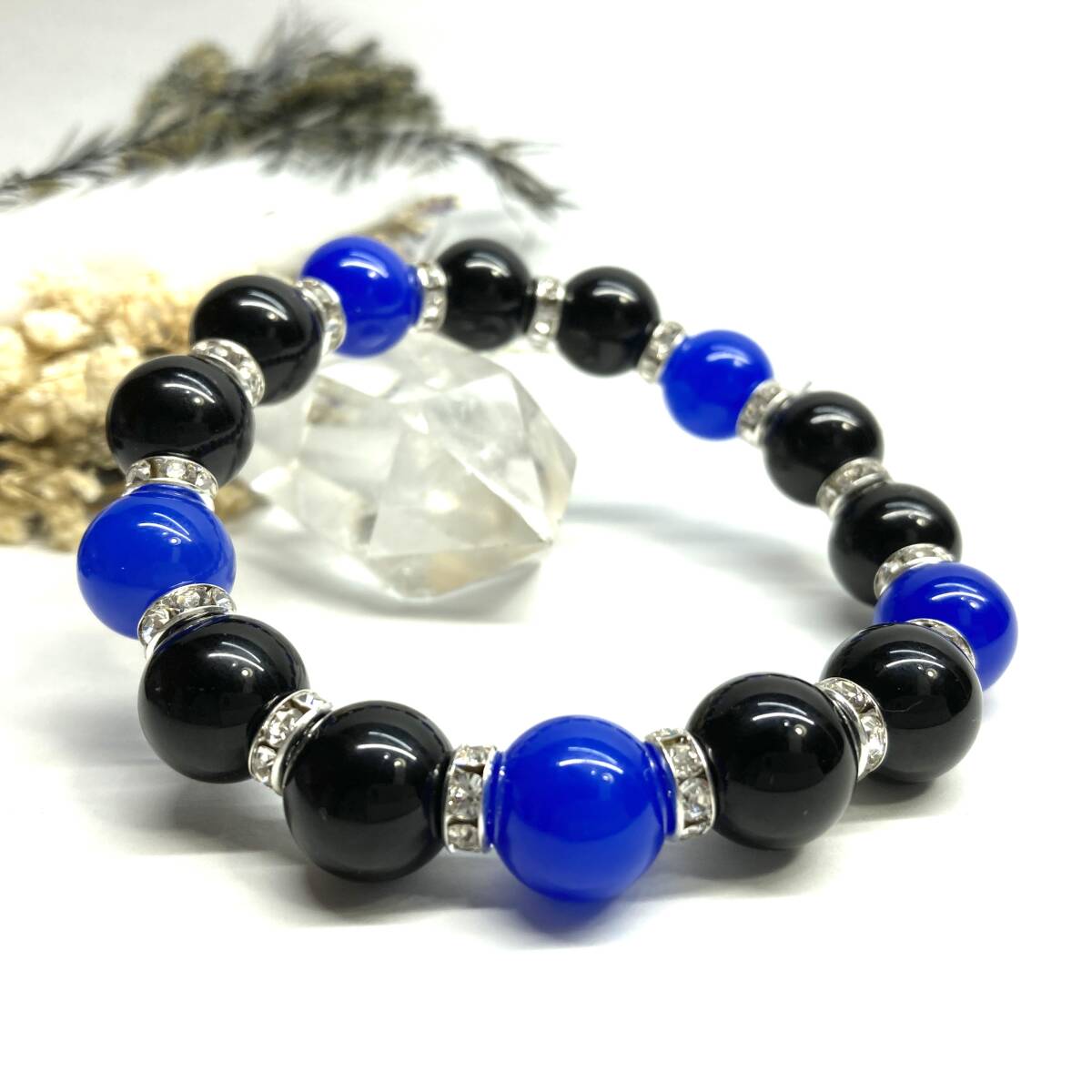 こちらは、モリオンと青瑪瑙を組み合わせたパワーストーンブレスレットです。間にはロンデルを挟み高級感あるデザインに仕上げております。程よくインパクトがある12mm玉を使用して内周約18cmです。(サイズ変更の場合は取引ナビにてご連絡をお願いします。) 数に限りがございますので気になる方はお早めにどうぞ。