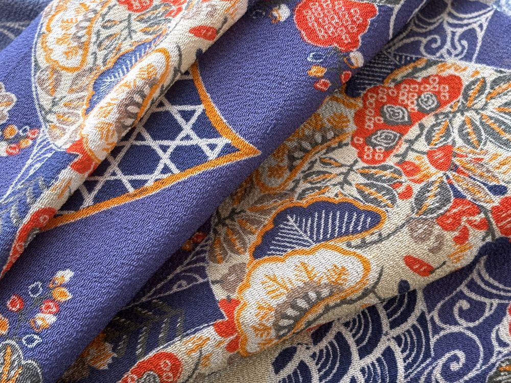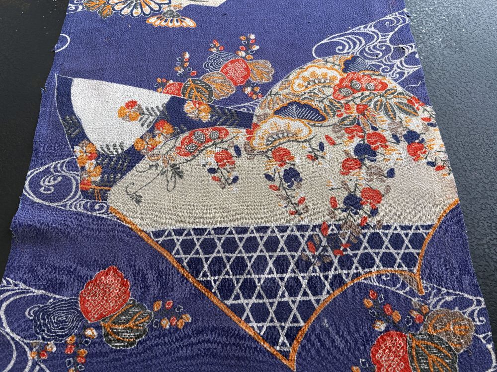 和の彩・春を寿ぐひととき~コレクション~ 縮緬・花扇と読み本柄・古典美 サイズ:約33cmx75cm ・地色:柔らかなブルーグレイ ・柄:赤を基調に彩豊かな草花が扇や読み本に優雅に描かれ、青海波紋や籠目紋が添えられた、古き良き時代を感じる趣深い一枚です ・素材:江戸縮緬と言える位シボのしなやかな正絹、上品な光沢と柔らかな風合いが魅力です ・状態:解き布のため経年による軽い使用感、小キズなど見られますが、目立つ傷みは無く全体的にとてもきれいな状態です ・おすすめ用途 縮緬細工やパッチワーク(発色の美しさが映えます) 雛節句の飾りや季節の手仕事(春らしい彩を添えます) 和小物や創作布小物の素材、額装飾りなど(凛とした趣を演出します) ◆発送方法 ・専用封筒全国一律180円で発送 ・複数ご購入の場合は、ゆうパケット(送料230円)にて同梱発送可能です ◆◆お支払い方法 ・ヤフーかんたん決済(安心・便利) | |||