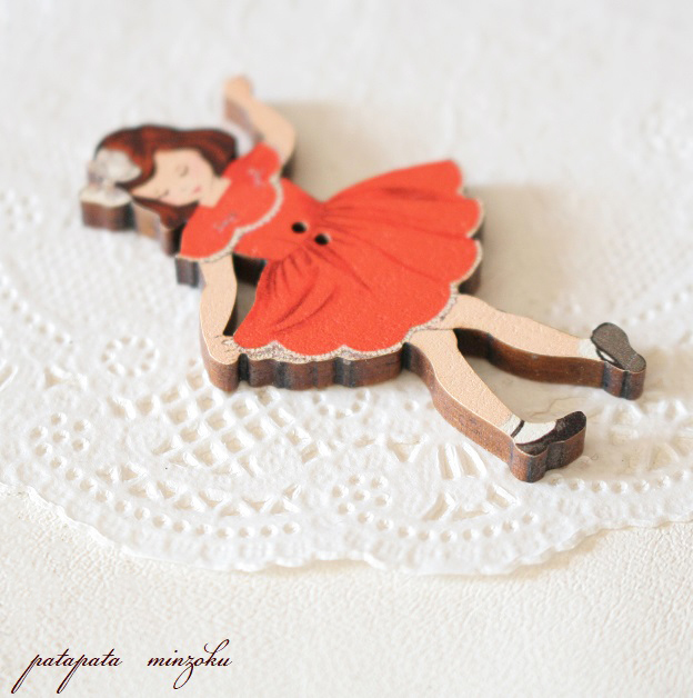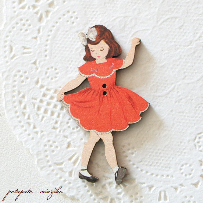 かわいい木製ボタンが入荷いたしました。白いリボンの女の子 です。