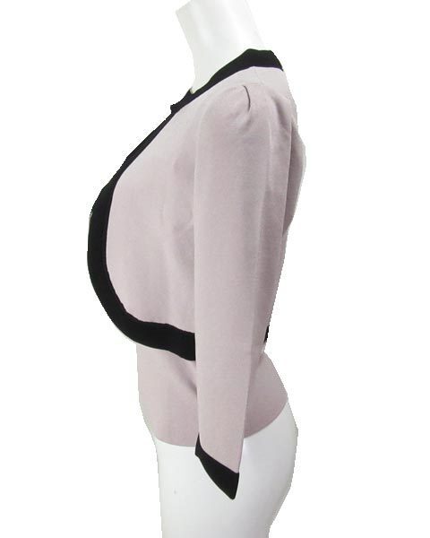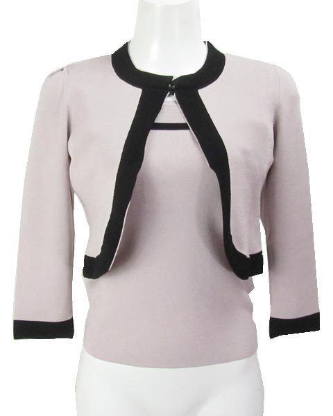 | 落ち着いたお色目のフェミニンなアンサンブル。グレーの入ったような落ち着いたピンクで、程よい可愛らしさ。インナーニットのお袖は透け感のあるシフォンのお袖で、セットはもちろん1枚使いも楽しめます。ボレロはワンピースやスカート、ハイウエストパンツなどとのオシャレが楽しめます。 |