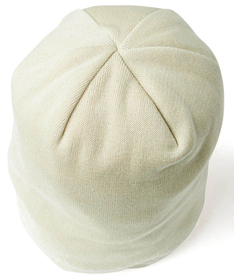 ■後部にスリットを設けており、後頭部にボリュームが出てシルエットバランスのとりやすいニットキャップに仕上がっています