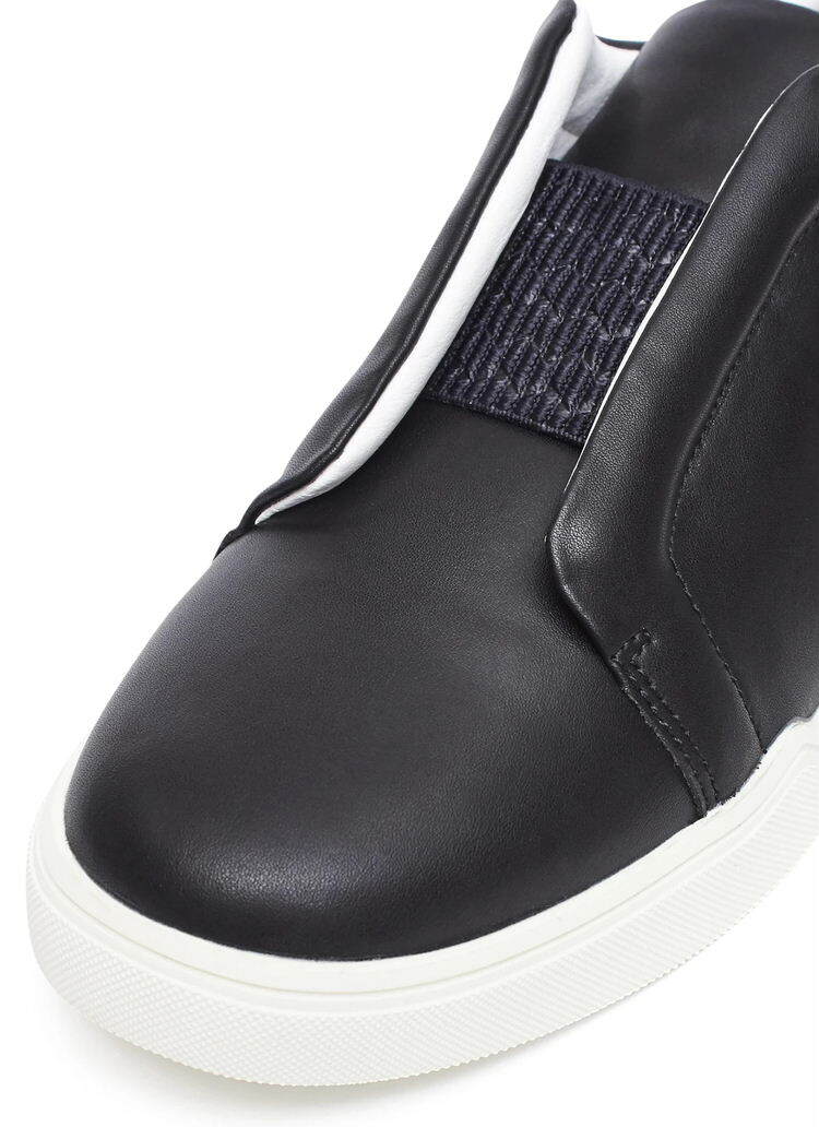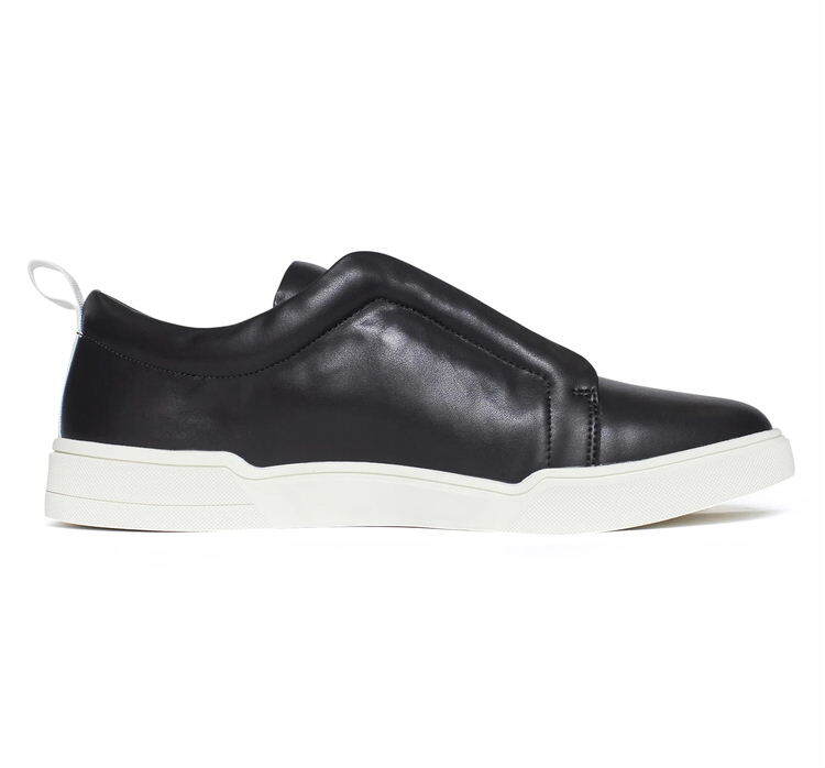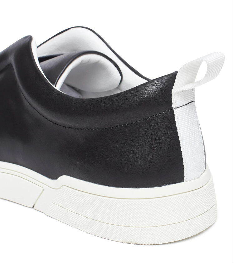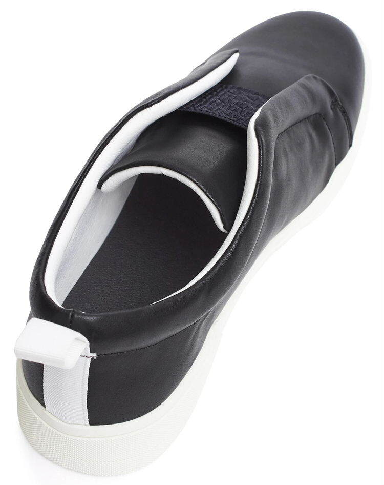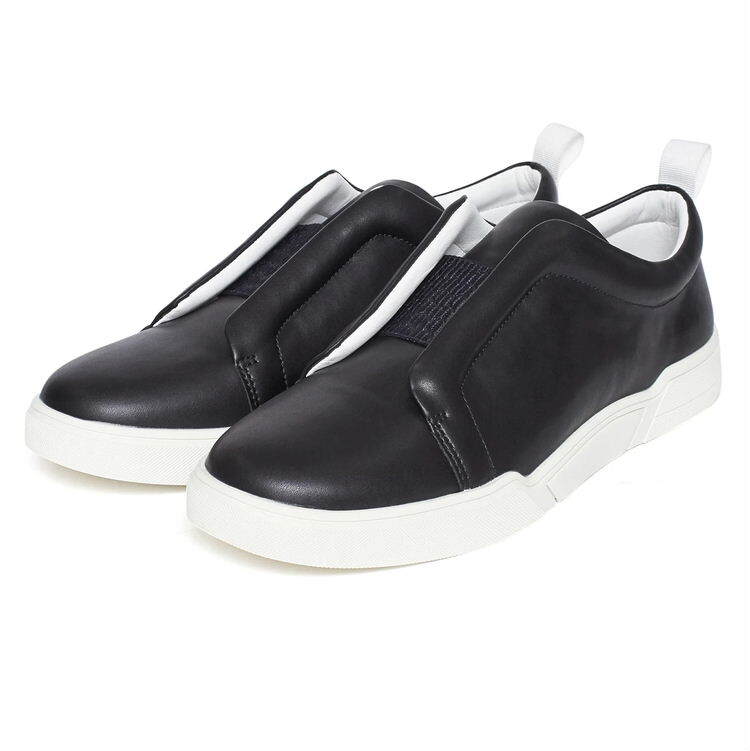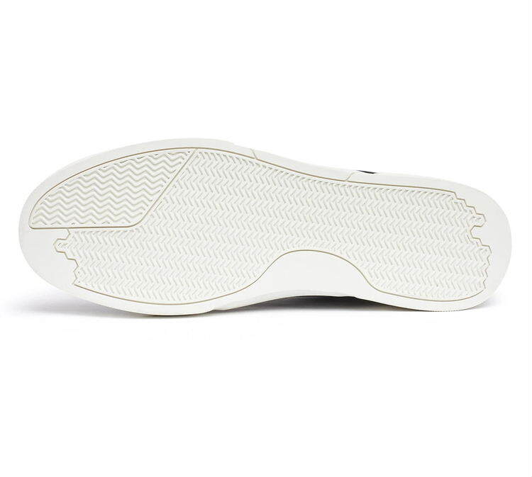 ■シンプルなスリッポンデザインに幾何学柄のラバーバンドを搭載し、本革の上品な表情とマッチした大人の一足。