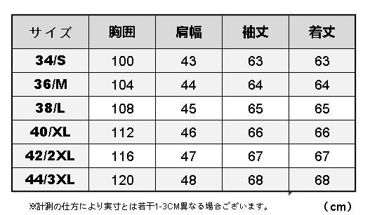 ★ご落札後お取引ナビでご希望サイズをお知らせください★ カウハイドを使用した復刻30’s USAF TYPE A-2フライトジャケットです。 1930年代のミリタリースタイルを忠実に再現したクラシックな一着になります。 植物タンニンなめしで仕上げられた牛革は、堅牢でありながら柔らかさも兼ね備えています。 染料仕上げとオイルレザー加工により、奥行きのある色合いを楽しめます。 無駄のないシンプルなシルエットは、武骨さと上品さを併せ持ちます。 フライトジャケットならではの存在感が、日常のスタイルを引き立てます。 経年変化によって深みを増す革の表情は、着るほどに個性が宿ります。 長年愛用できる、ヴィンテージ志向の方におすすめの一着です。 ■状 態 :新品未使用 ■カラー :画像参考 ■実 寸 :背中側採寸 身幅/脇下すぐ ■SIZE :画像参考 ■素材:カウハイド(牛革) ※サイズだけでは無く,必ず実寸をご確認下さい。 ※実寸は平置実寸。計測の仕方で若干の誤差がありますので参考程度。 |