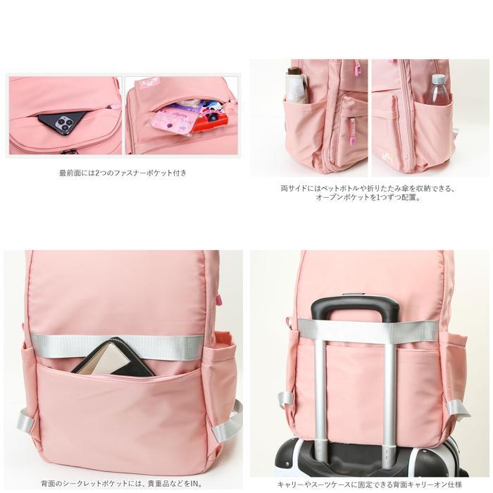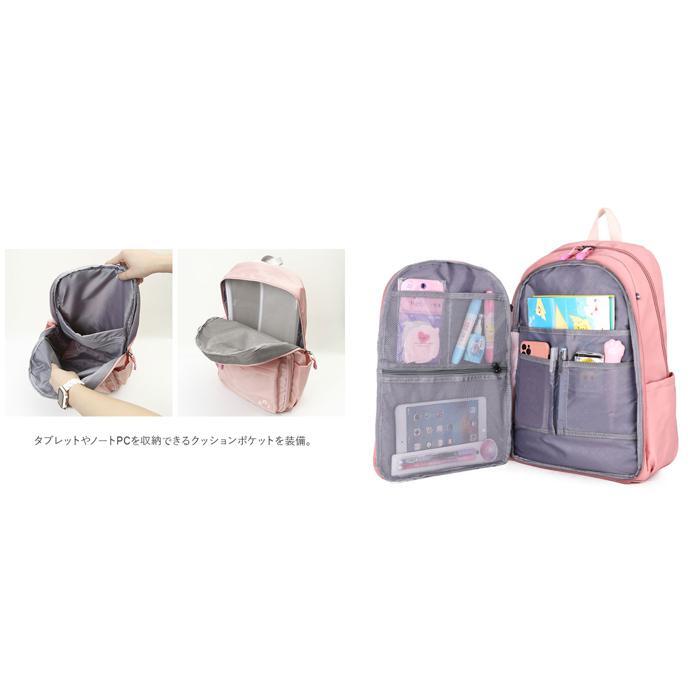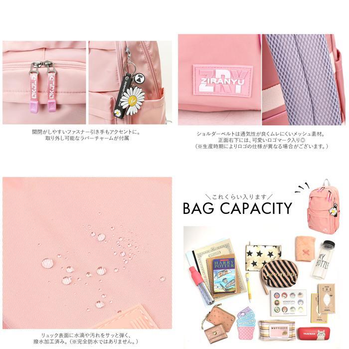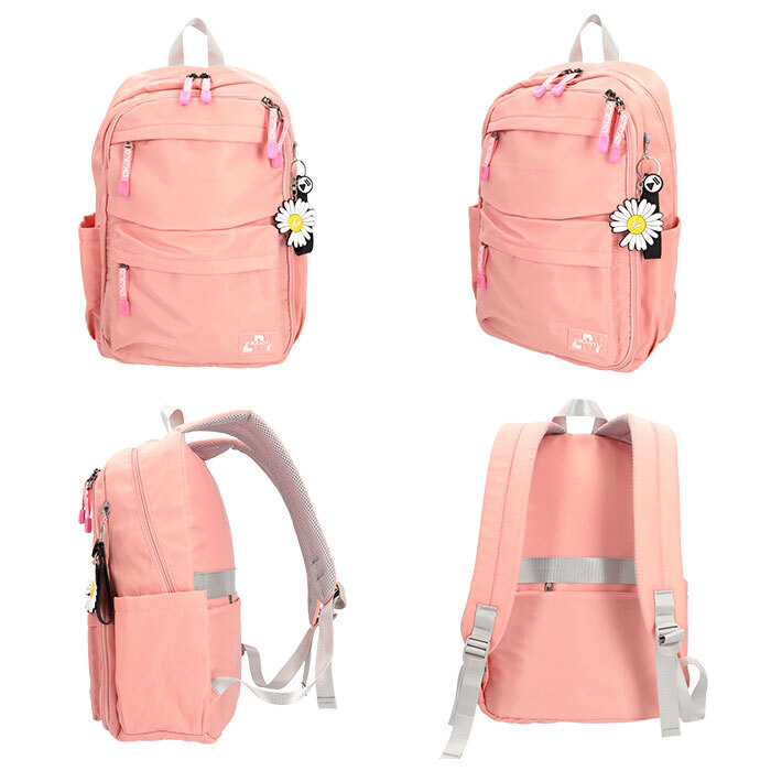 | 商品説明 | ・・収納力抜群!通学や遠足、旅行などで大活躍のリュックが登場。 ・メインルーム開口部は、側面まで大きく開くダブルファスナー式。 ・内側はB4サイズがぴったり収まるサイズ感◎マチと深さがあり、お出かけに必要な荷物をたっぷりと収納可能。 ・タブレットやノートPCを収納できるクッションポケットを装備。 ・メインルーム前のファスナーポケットをガバっと開くと、多数のポケット付きルームが登場★小物をすっきり整理できて、取り出しもラクチン。 ・向かって左側・・・オープンタイプのメッシュポケット×2、ファスナータイプのメッシュポケット×1。 ・向かって右側・・・A4サイズ対応のオープンポケット×1、オープンポケット×2、ペンホルダー×2。 ・最前面には2つのファスナーポケット付き。 ・両サイドにはペットボトルや折りたたみ傘を収納できる、オープンポケットを1つずつ配置。 ・背面のシークレットポケットには、貴重品などをIN。 ・キャリーやスーツケースに固定できる背面キャリーオン仕様。 ・背面とショルダーベルトはクッション性があり、背負い心地快適◎ ・ショルダーベルトは通気性が良くムレにくいメッシュ素材。 ・リュック表面に水滴や汚れをサッと弾く、撥水加工済み。(※完全防水ではありません。) ・開閉がしやすいファスナー引き手もアクセントに。 ・取り外し可能なラバーチャームが付属。 |