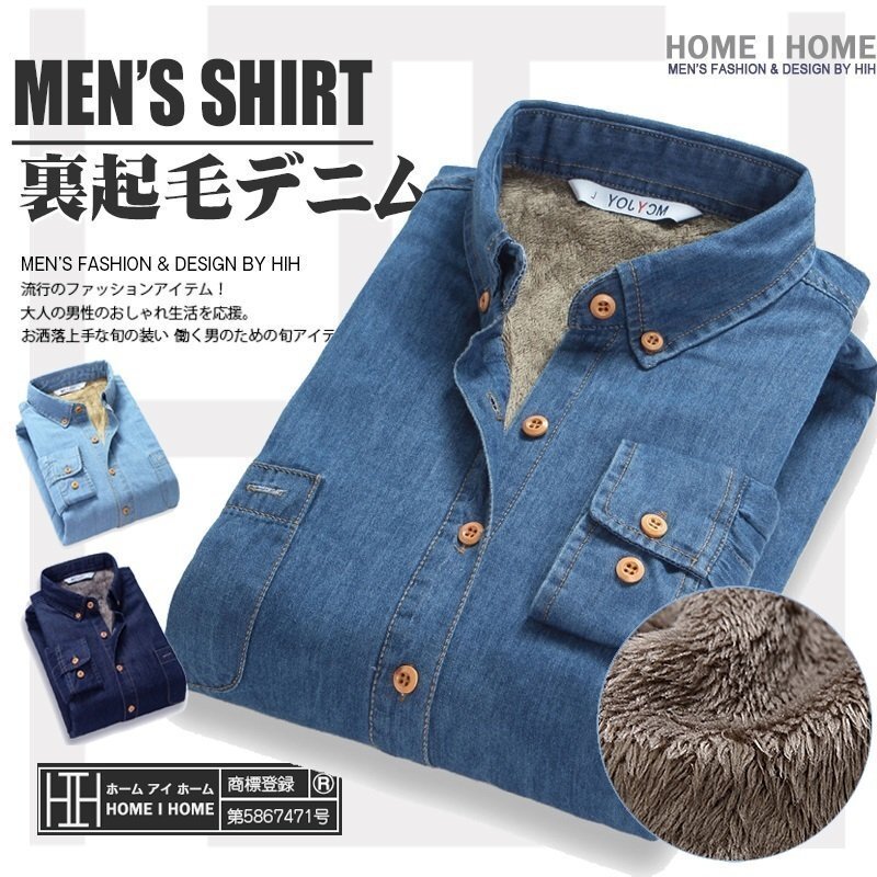 裏起毛デニムシャツ メンズ 長袖 裏ボア アメカジ カジュアルシャツ ワークシャツ カジュアル ヴィンテージ ユーズド加工 色落ち トップ