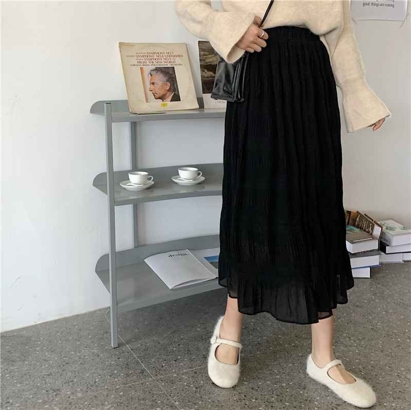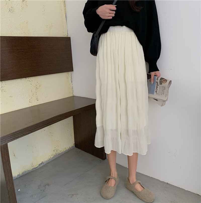 ・脚長・美脚効果のあるミモレ丈で、どんなトップスにも合わせやすく、デイリー使いしたくなる1着です。