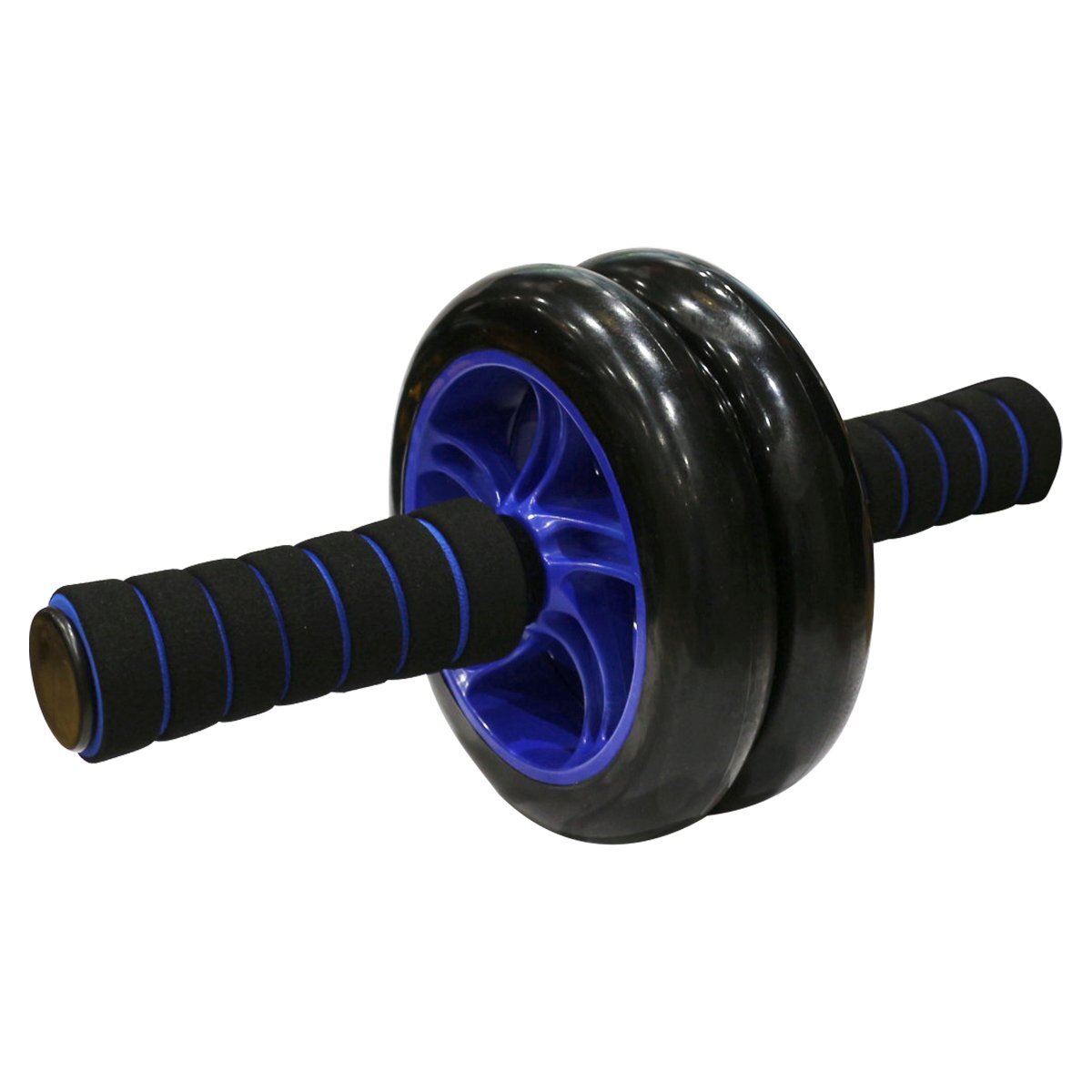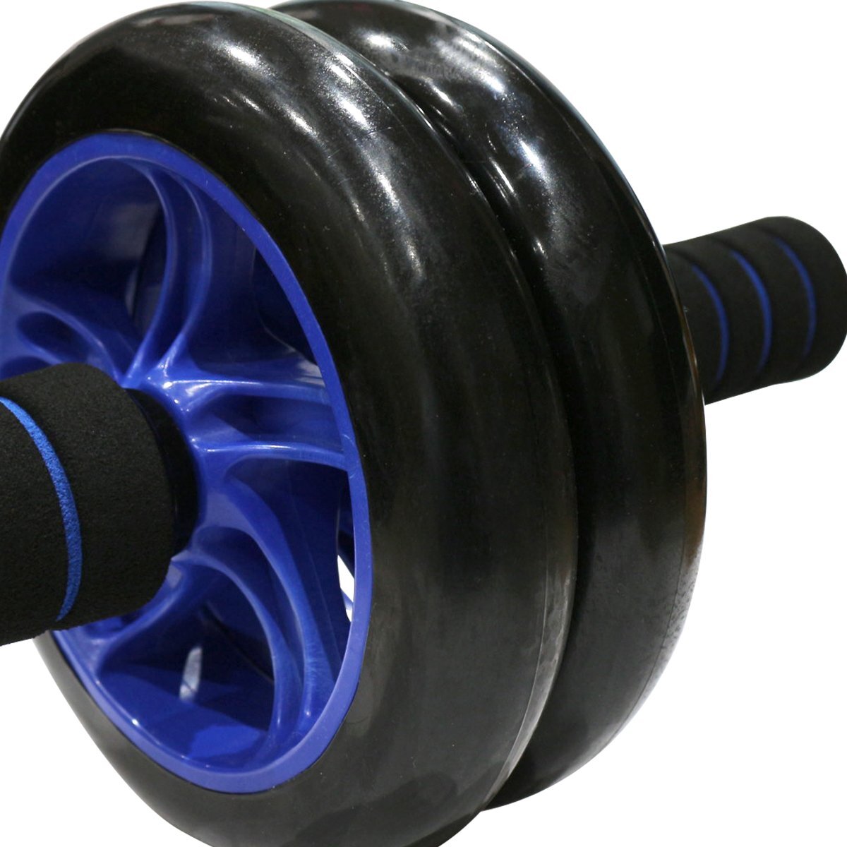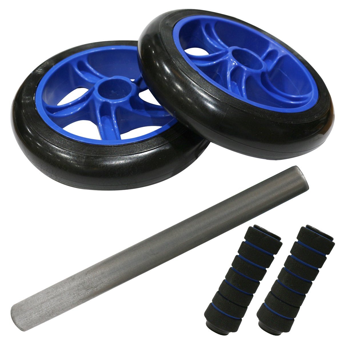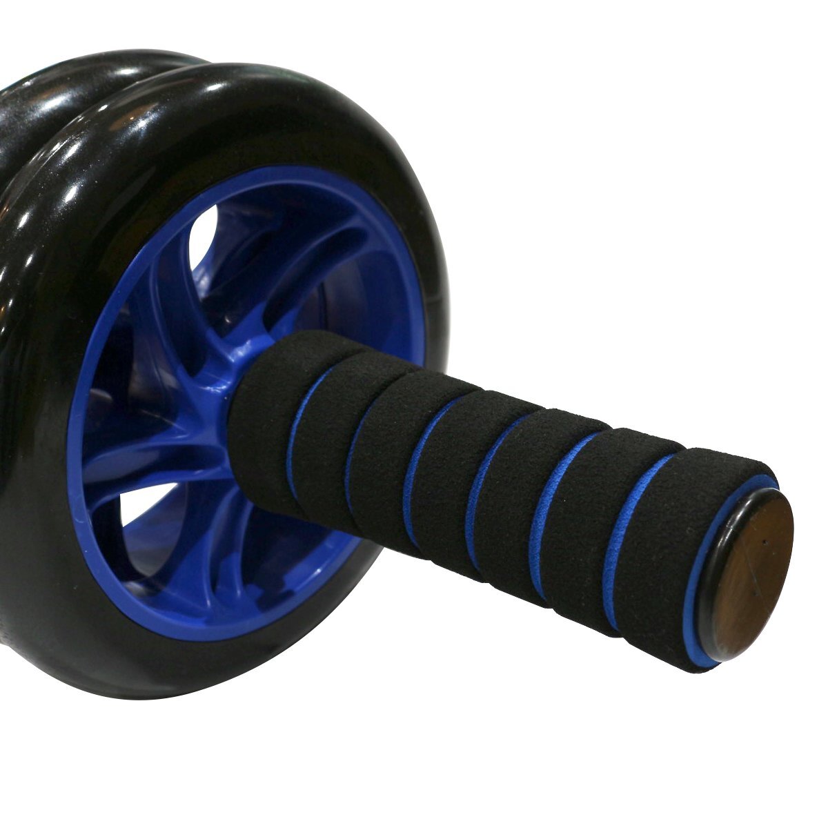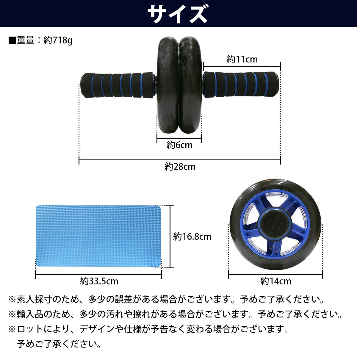【新品即納】『直径14cm』アブホイール エクササイズウィル 腹筋ローラー エクササイズローラー 膝専用マット付 ブルー ダブルホイール仕様