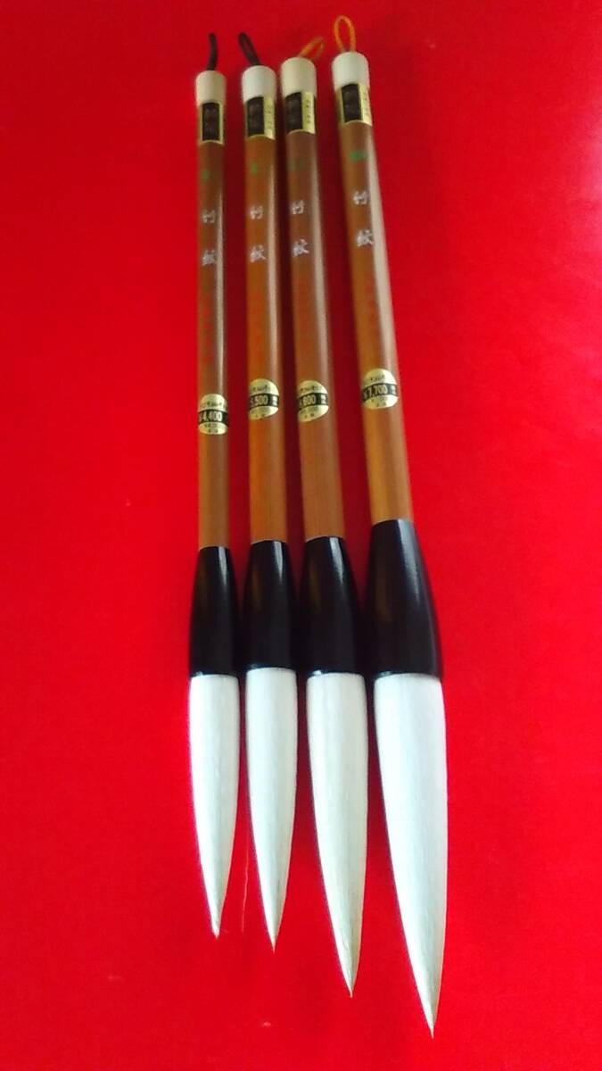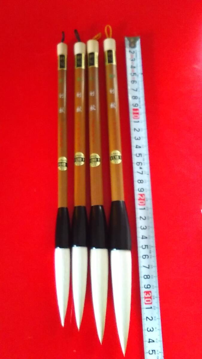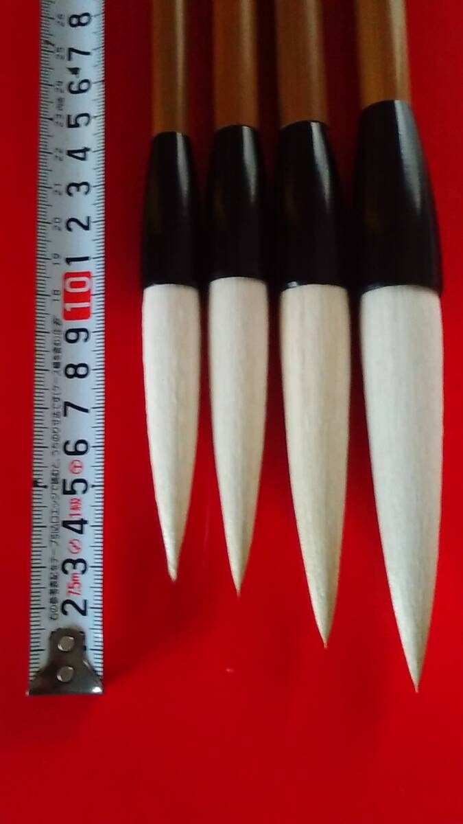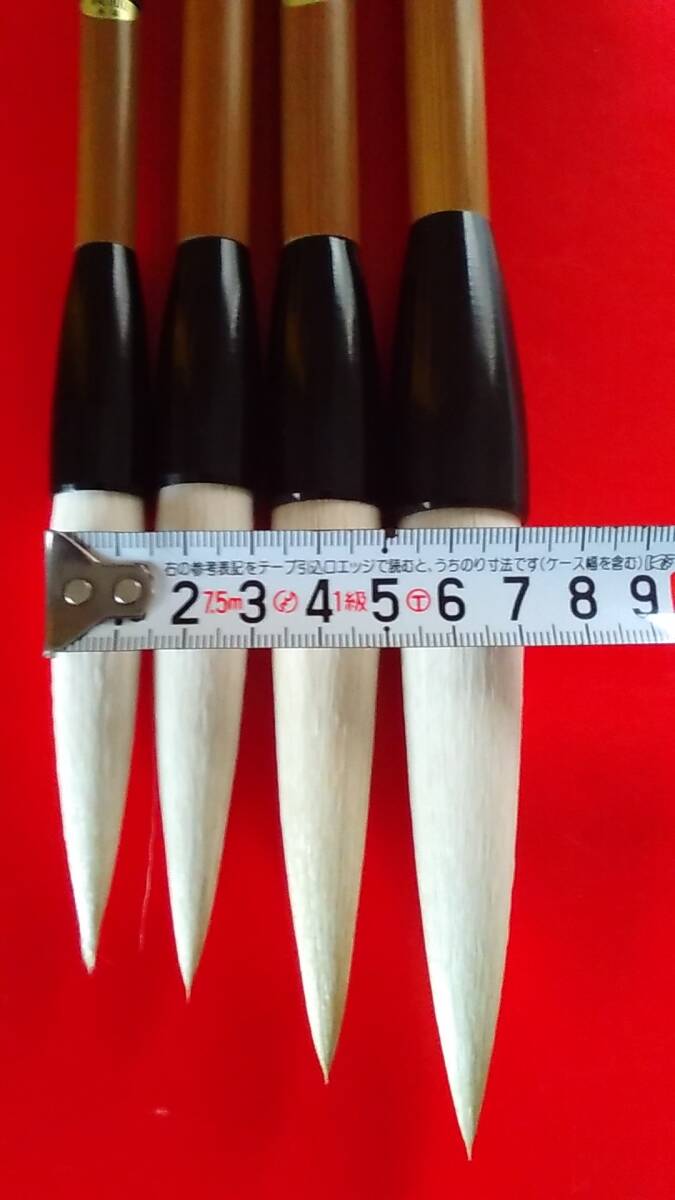 書道専門家向 創作 条福にも <竹紋 シリーズ4本> 久保田号 広島熊野産 日本一の筆処、伝統的な技術・技法によってつくり出された熊野筆 久保田号 腰が強く、先が効く使いやすい筆です。1号(4400円)穂丈43mm 穂首14,5mm 2号(5500円)穂丈81mm 穂首15,7mm 3号(6600円) 穂丈88mm 穂首1mm 4号(7700円)穂丈95mm 穂首21mm セット価格定価24200円 上質な羊毛と、白天馬を使用。全体的に少し硬めで復元力もある。書道芸術への意欲をかきたてる創作用の大筆 広島熊野の名筆おすすめ品。半紙、半切1行書き程度 発送は)レターパックプラス600円 その他の出品もご覧ください。