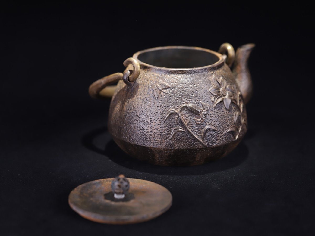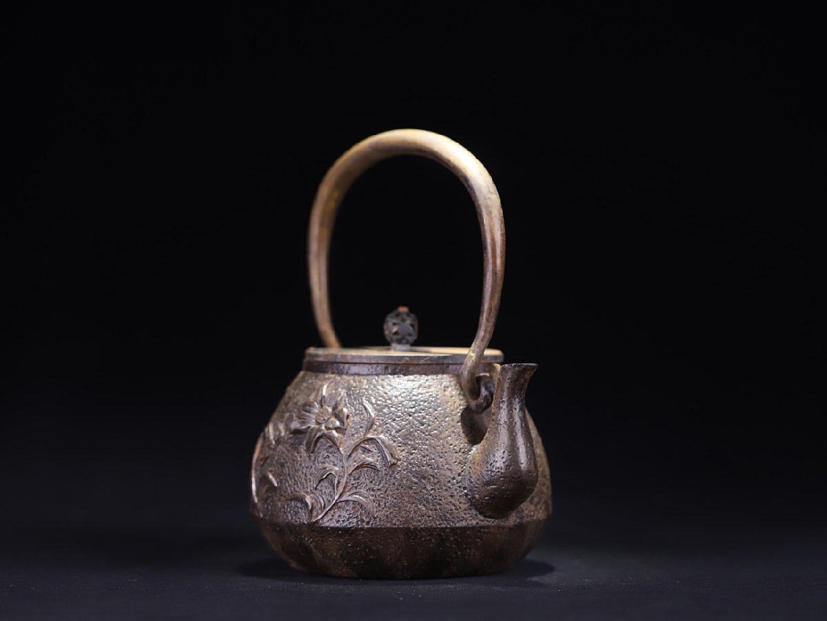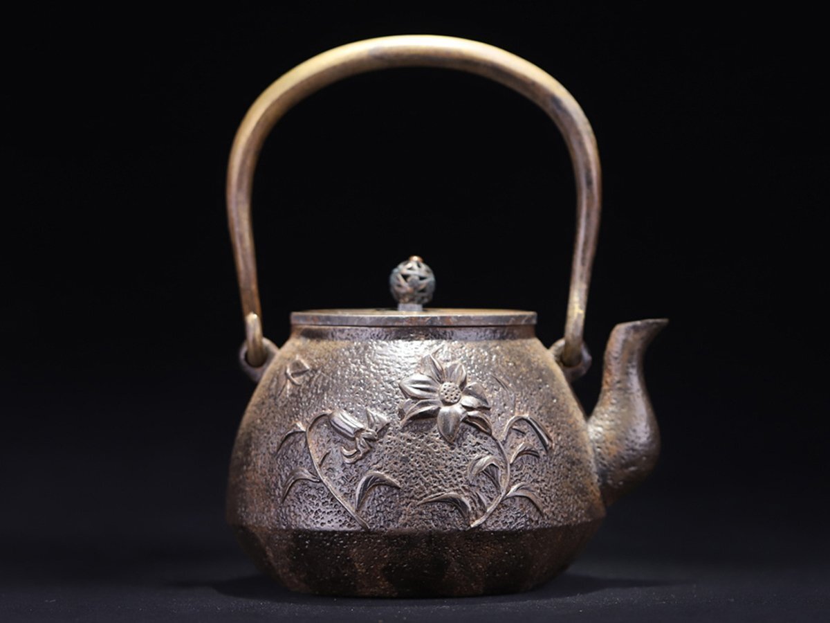 【安】鉄瓶 鉄製 湯沸 荷花彫紋提梁茶壺 煎茶道具 極細工 茶壷 急須 古美味 時代物 古董品 292 サイズ(約寸) |