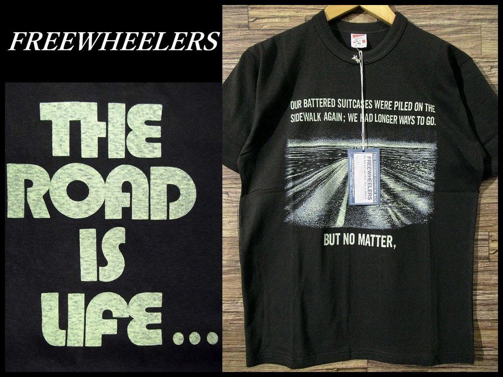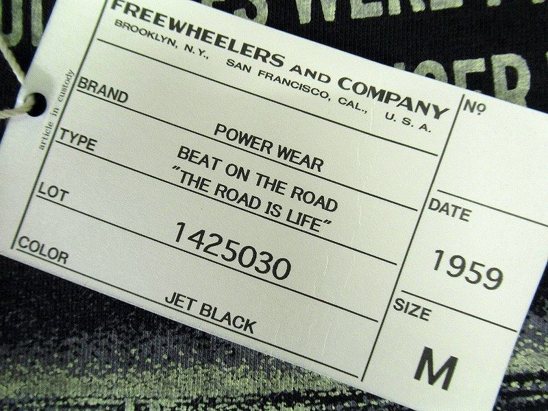 ◆ 新品 14SS FREEWHEELERS フリーホイーラーズ POWER WEAR 1959 BEAT ON THE ROAD THE ROAD IS LIFE 半袖 Tシャツ ジェットブラック M